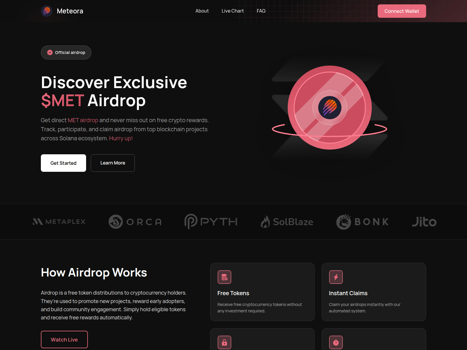 Scammers create fake websites promising free cryptocurrency airdrops to lure victims.