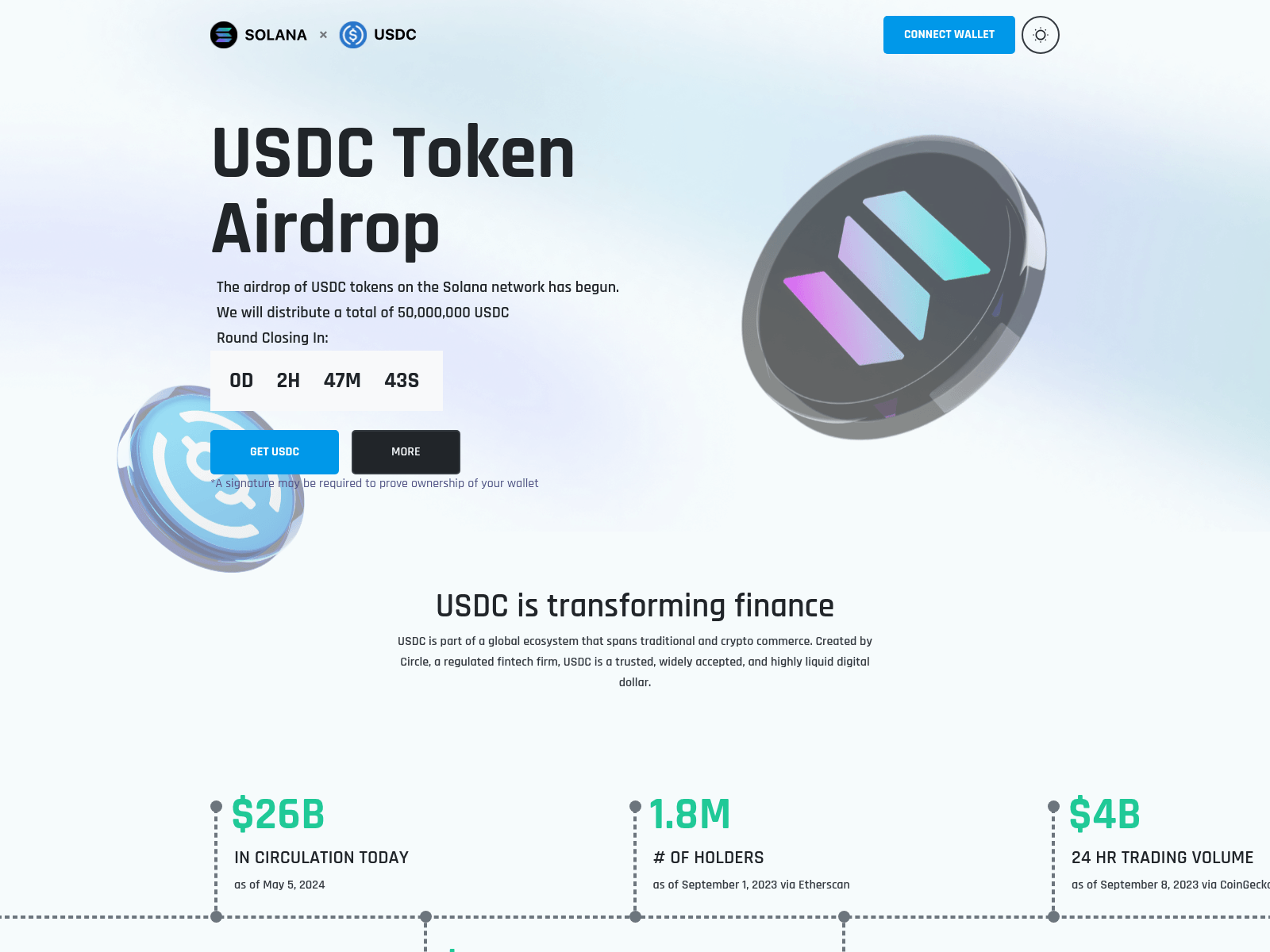 Users are prompted to enter personal details or connect their crypto wallets to receive the airdrop.