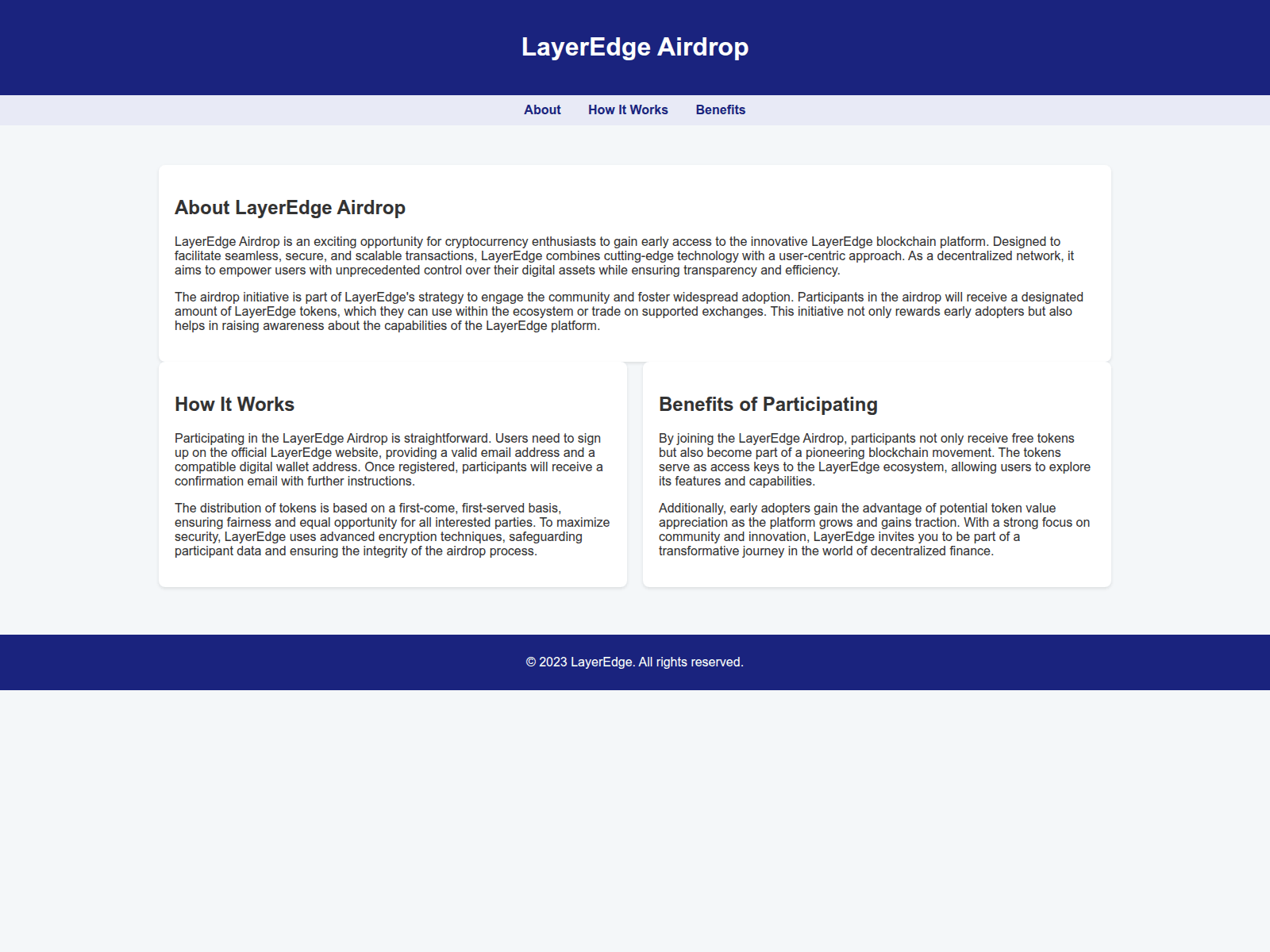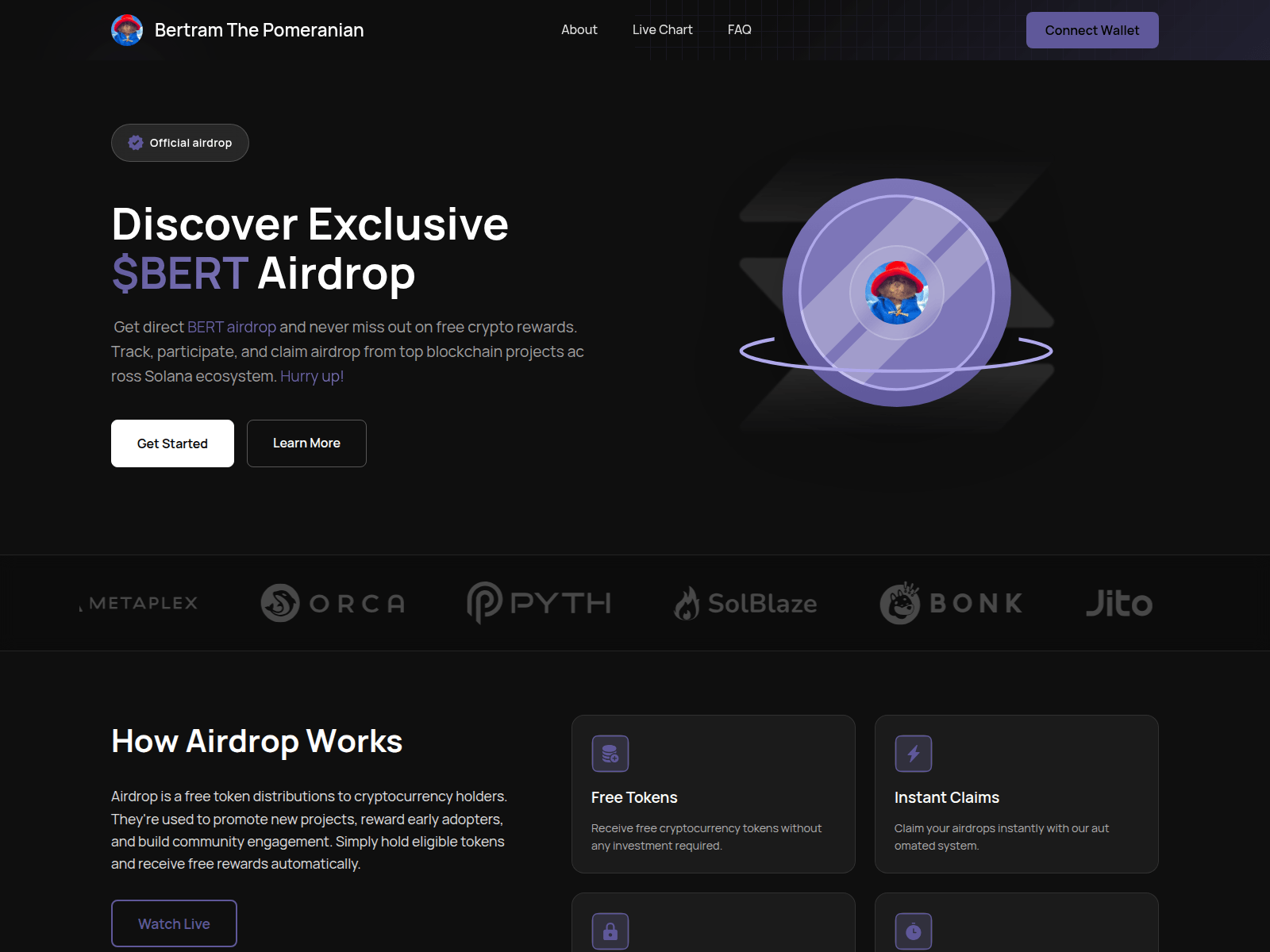 Scammers create fake websites promising free cryptocurrency airdrops to lure victims.