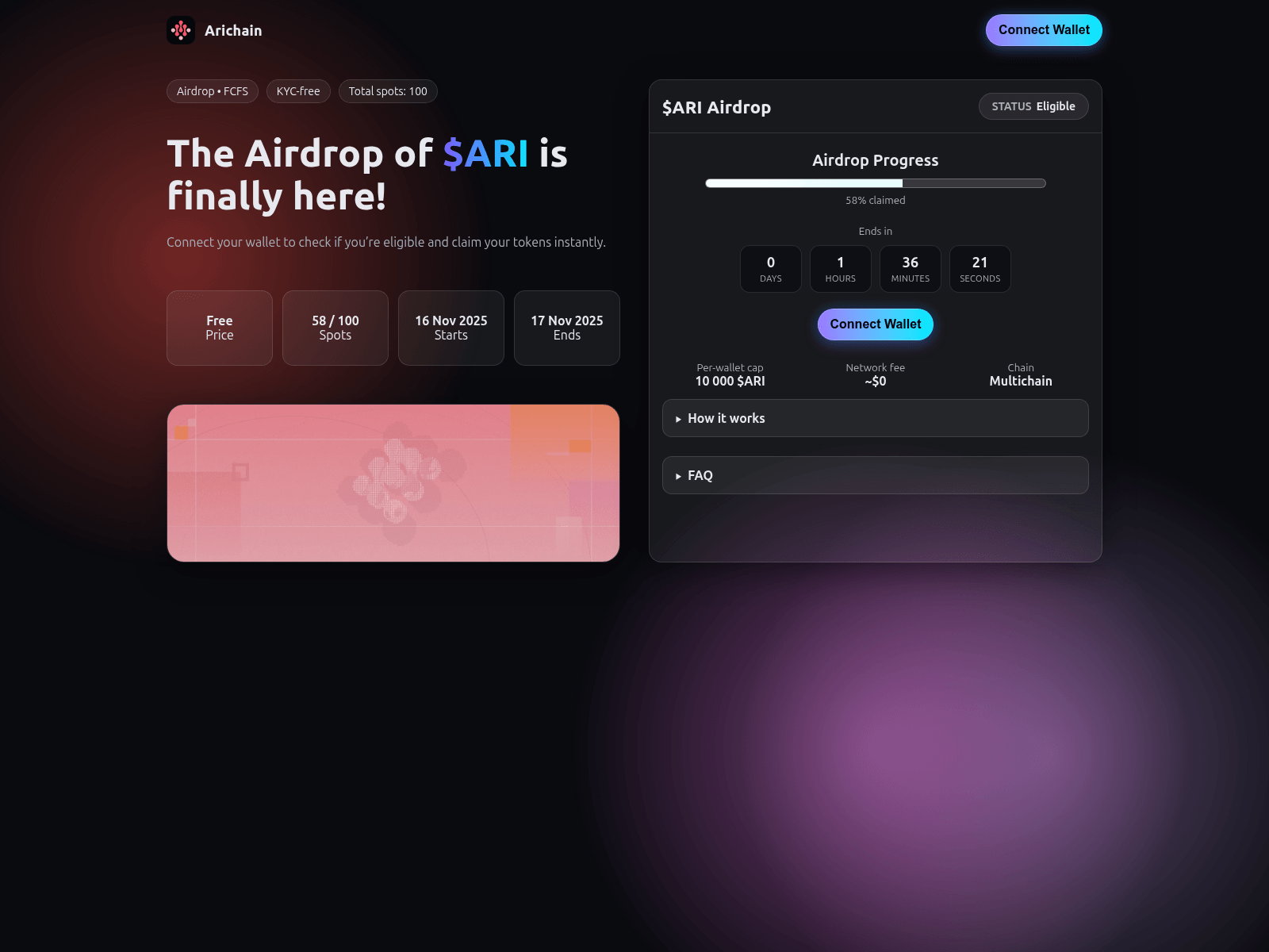 Users are prompted to enter personal details or connect their crypto wallets to receive the airdrop.