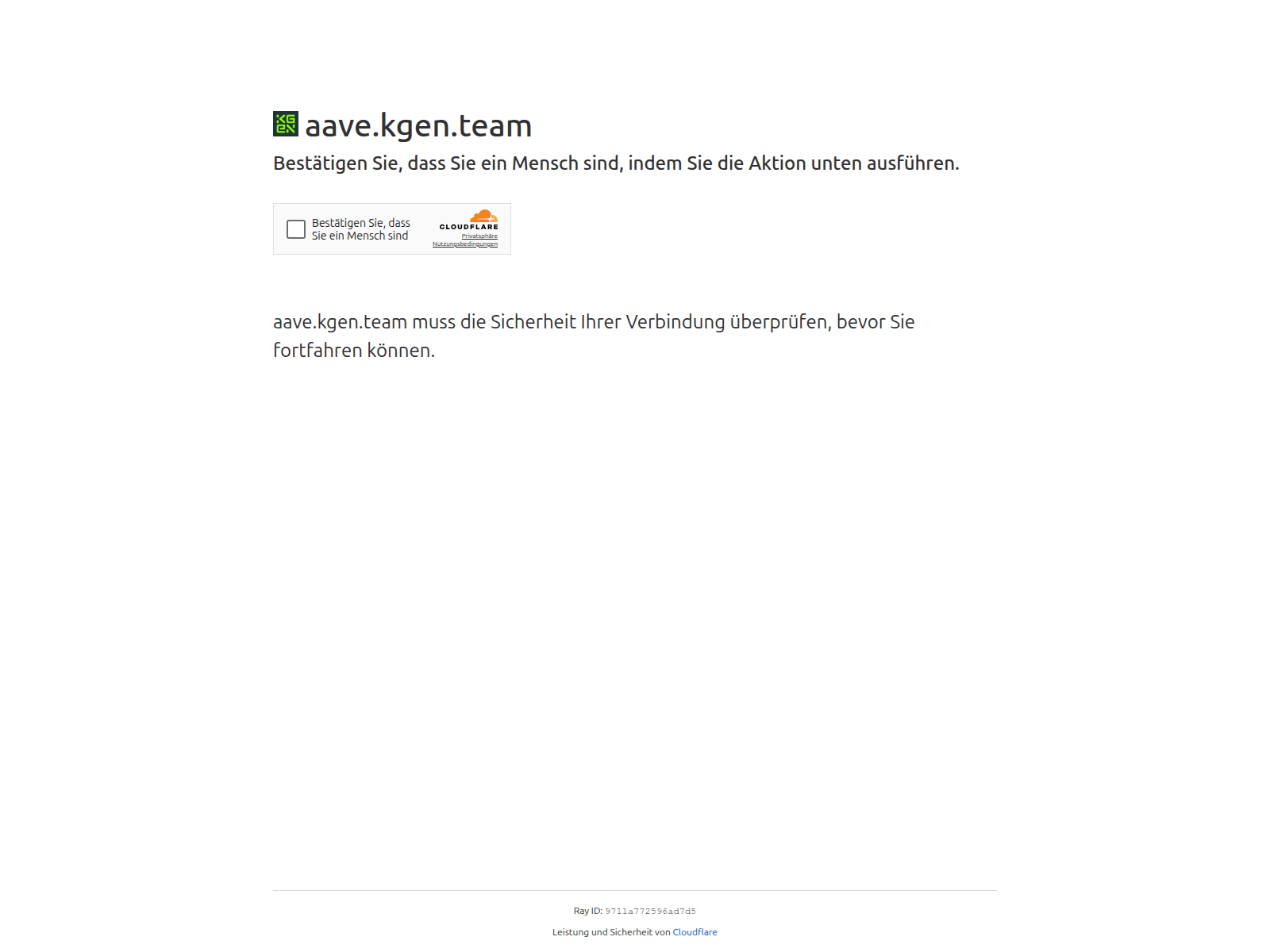 aave[.]kgen[.]team was registered recently, on February 21, 2026, and while it is flagged on one security blocklist, only 2 out of 95 VirusTotal scanners currently detect it as malicious. The domain resolves to IP 172.67.177.83 and displays a page titled "Nur einen Moment…", which may be used to lure victims into waiting or submitting data.