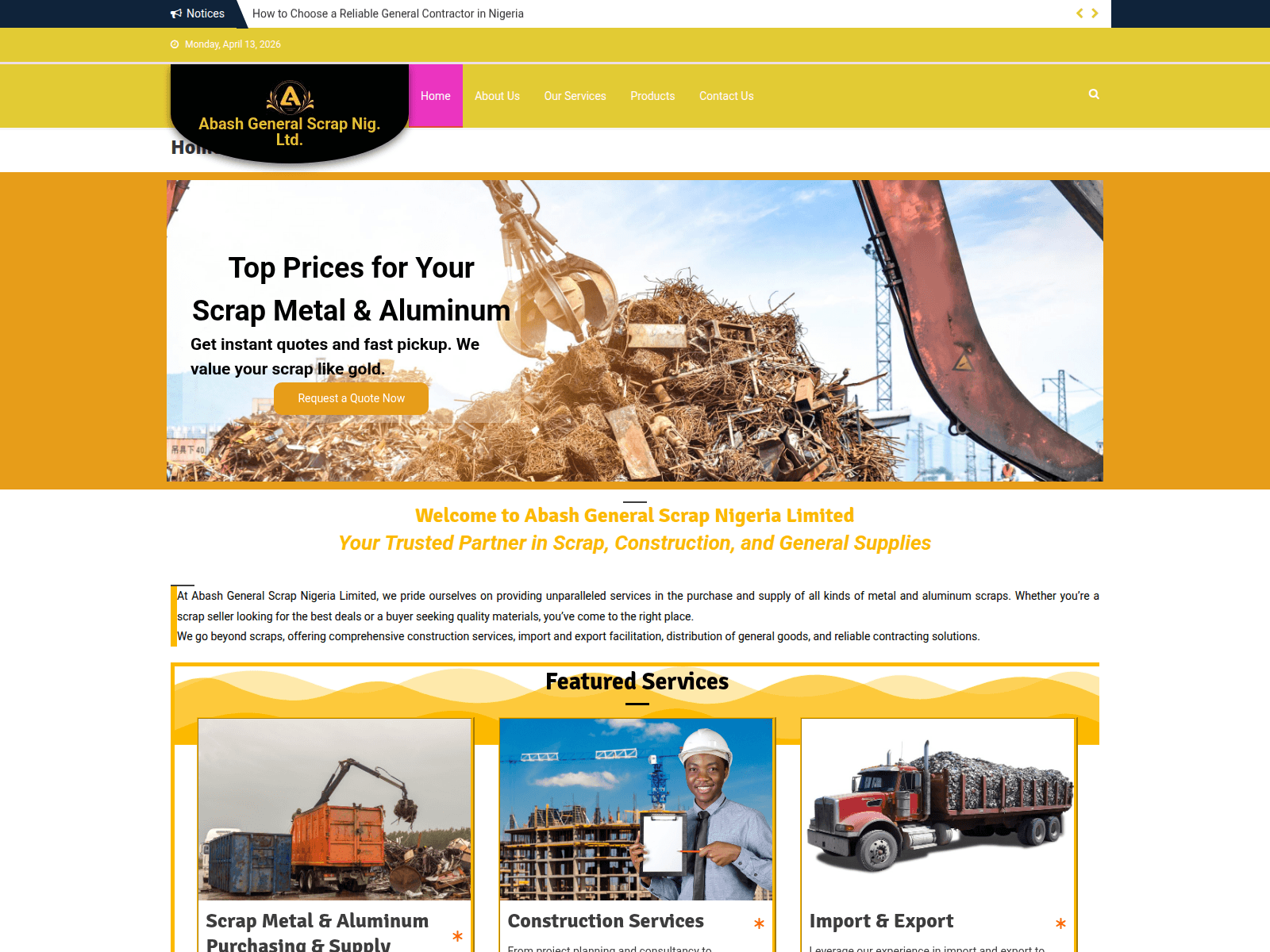The site displays a page titled “Abash General Scrap Nig. Ltd.”.