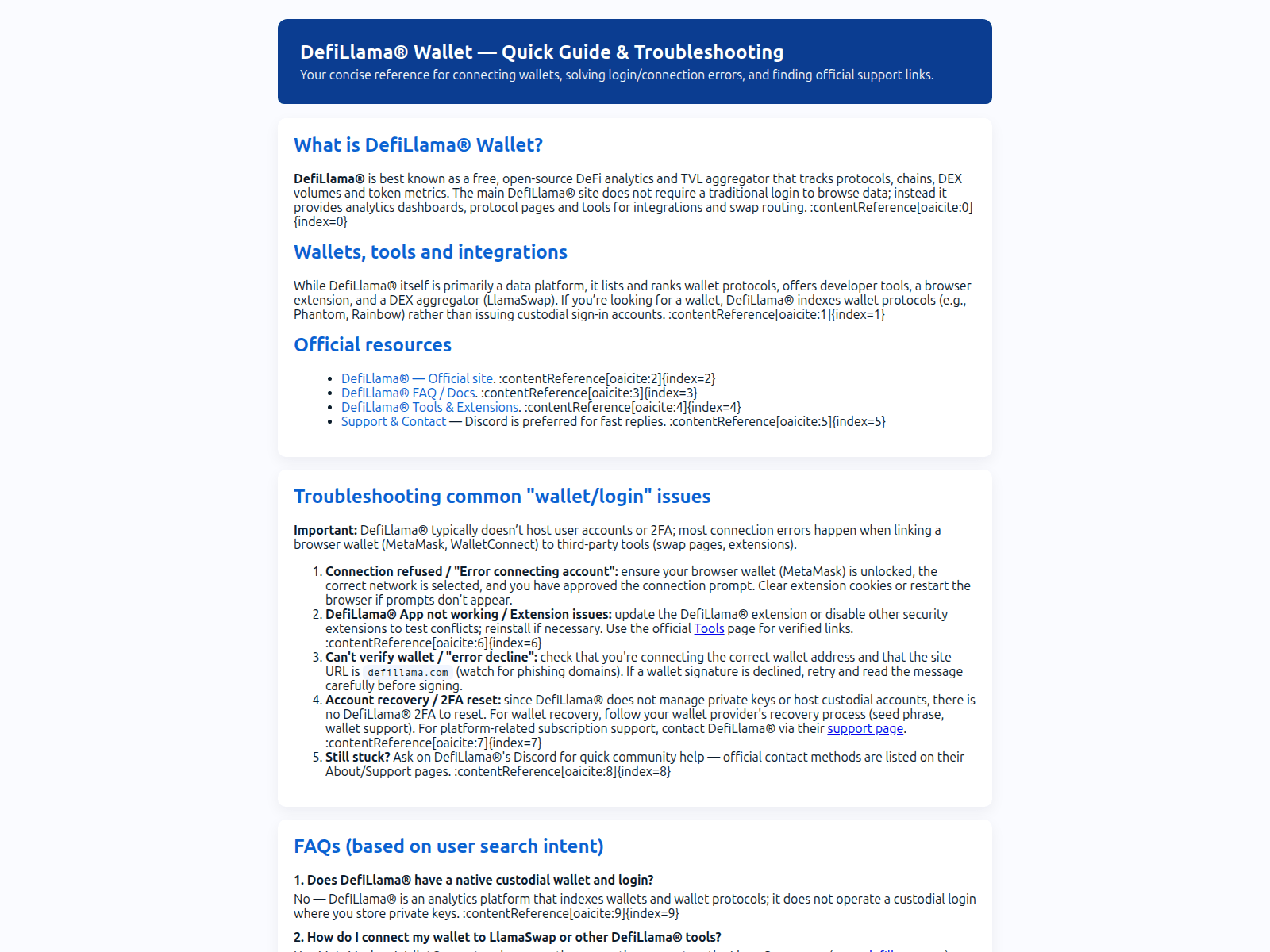 “DefiLlama® Wallet — Guide, Troubleshooting & FAQs”