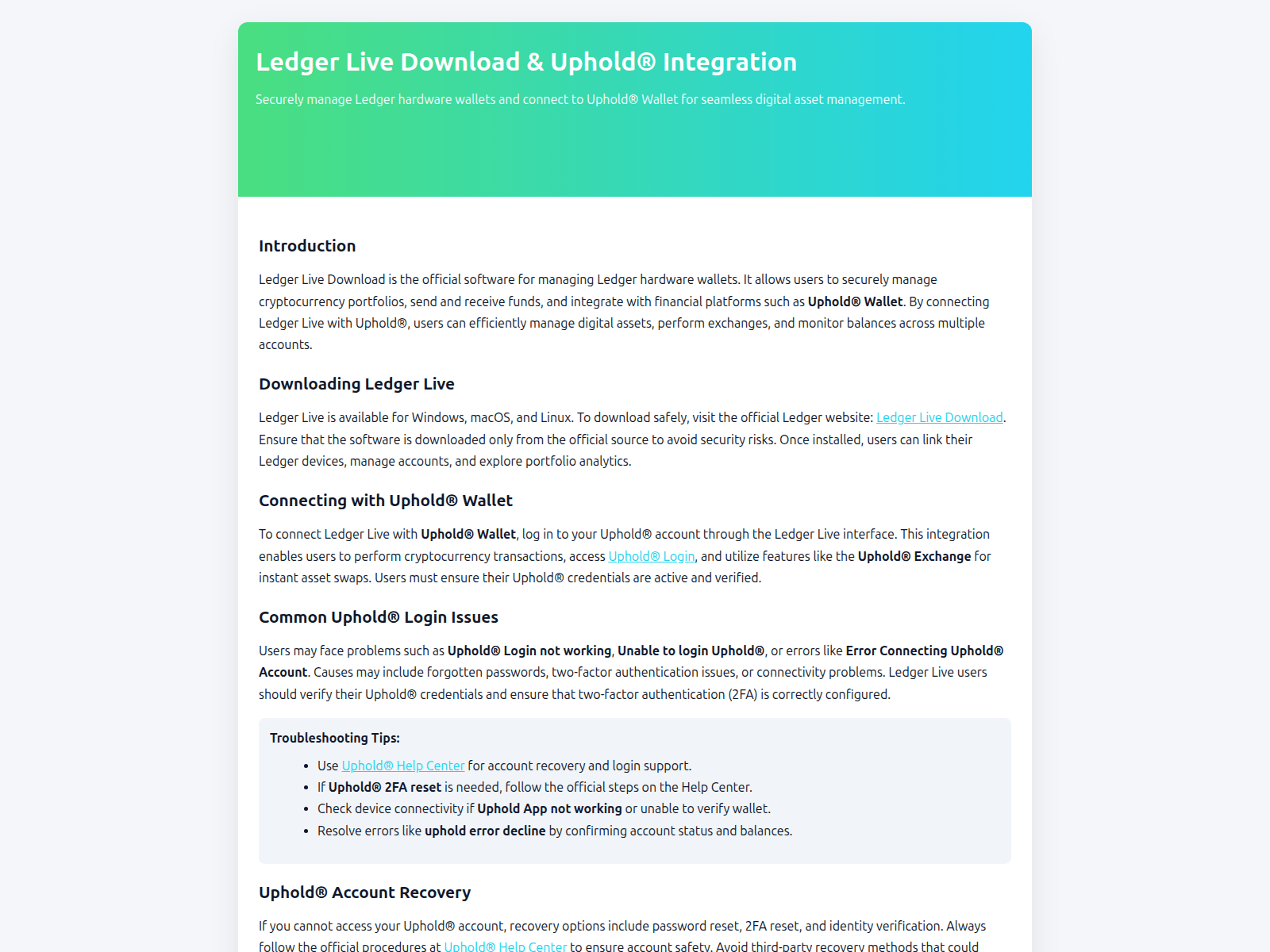 Domain Security & Threat Intelligence Report“Ledger Live Download & Uphold® Integration Guide”