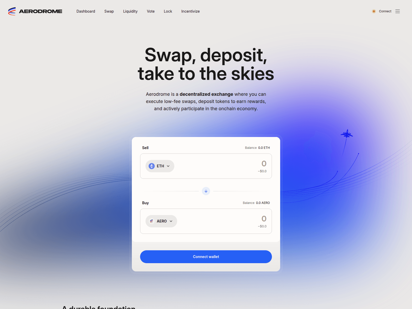 The site displays a page titled “Aerodrome Finance”, which may be designed to impersonate aerodrome.