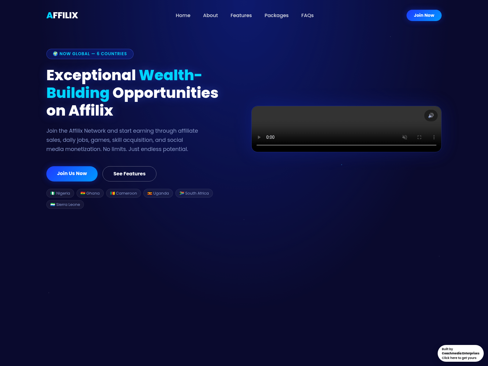 The site displays a page titled “Affilix Network — Earn, Grow”.