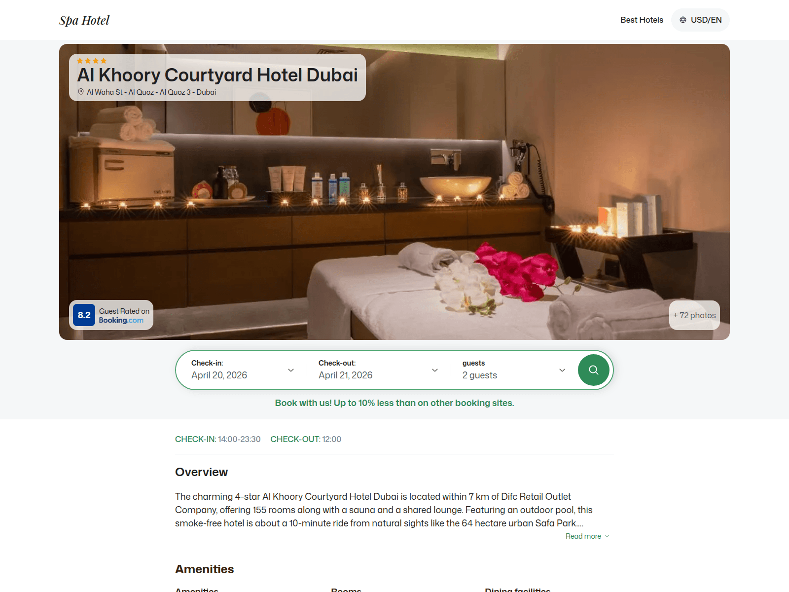 The site displays a page titled “Al Khoory Courtyard Hotel Dubai - Dubai, United Arab Emirates”.