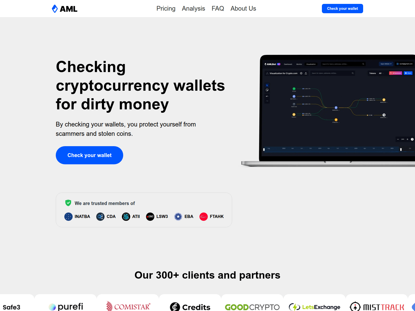 The site displays a page titled “AML - Comprehensive AML Compliance Solutions for Crypto”.