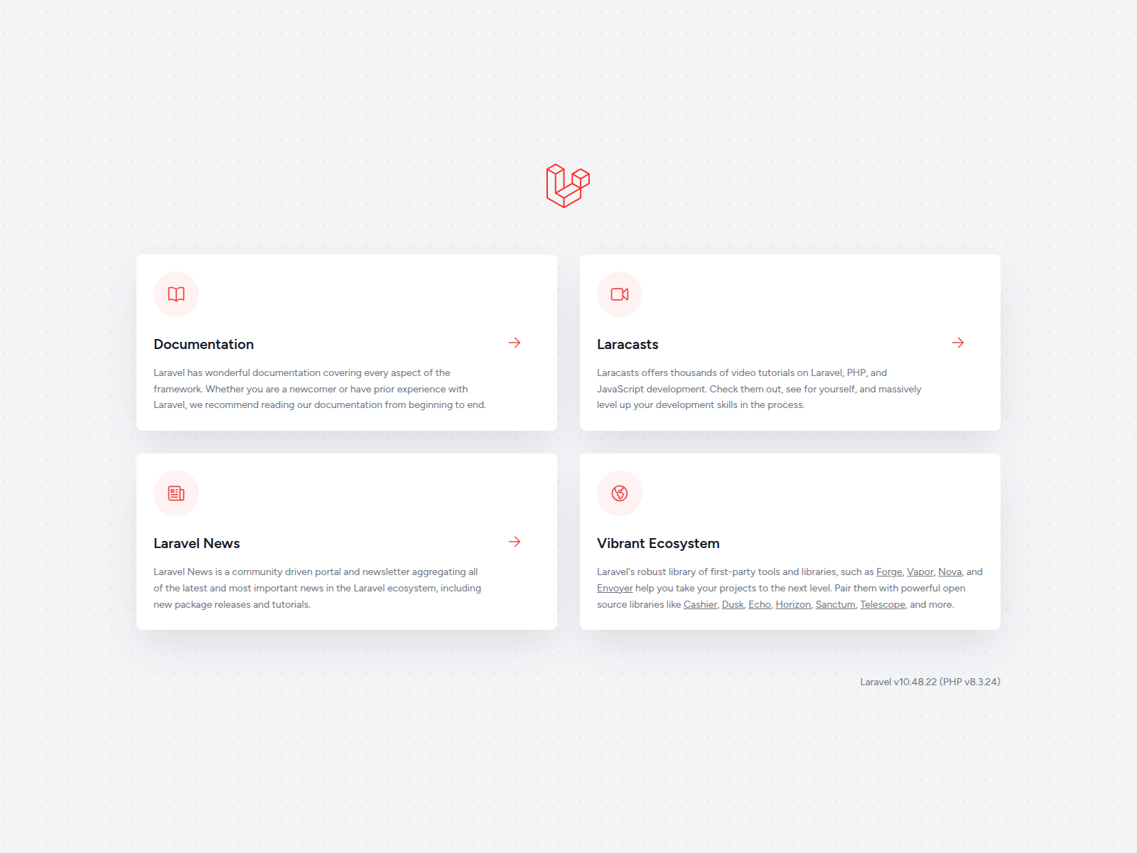 The site displays a page titled “Laravel”.