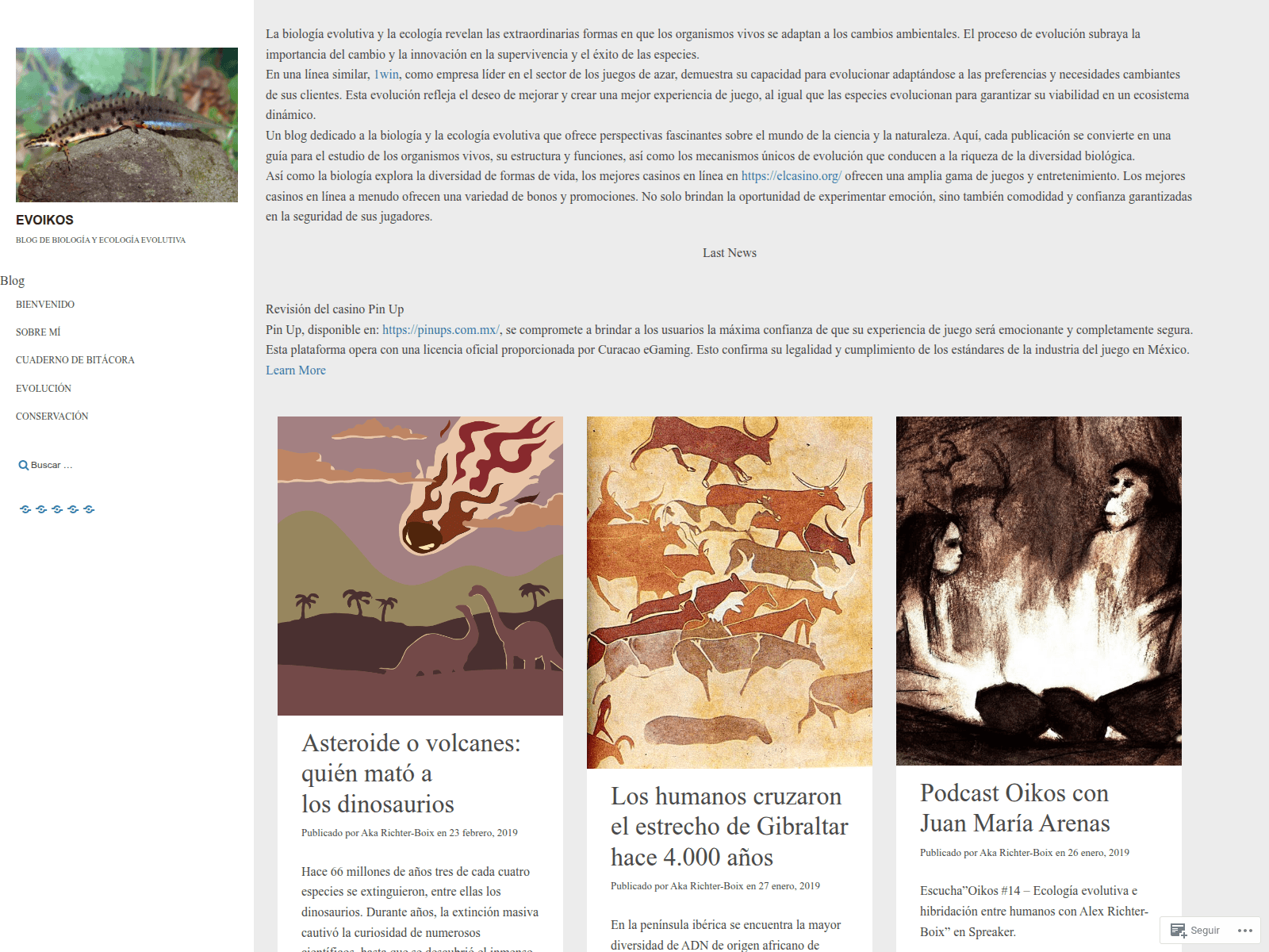 The site displays a page titled “EvOikos – Blog de biología y ecología evolutiva”.