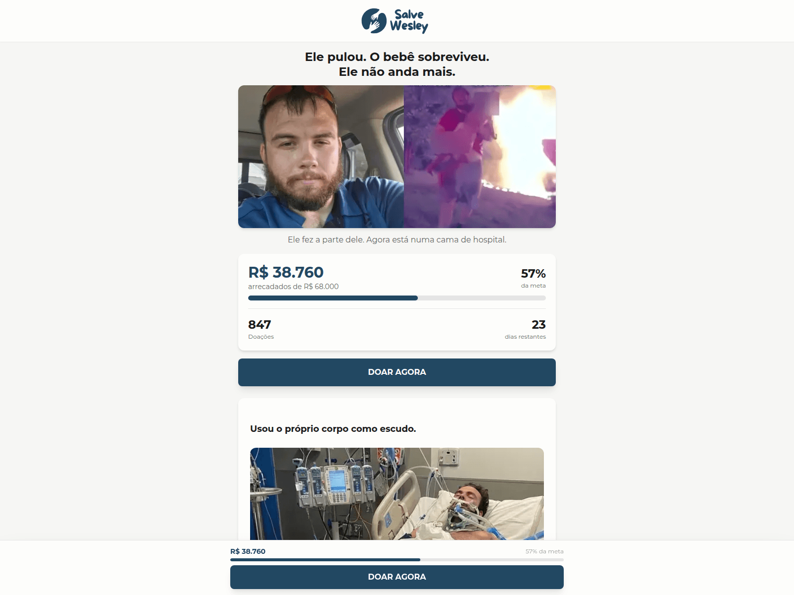 The site displays a page titled “Salve Wesley – Doando Agora”.