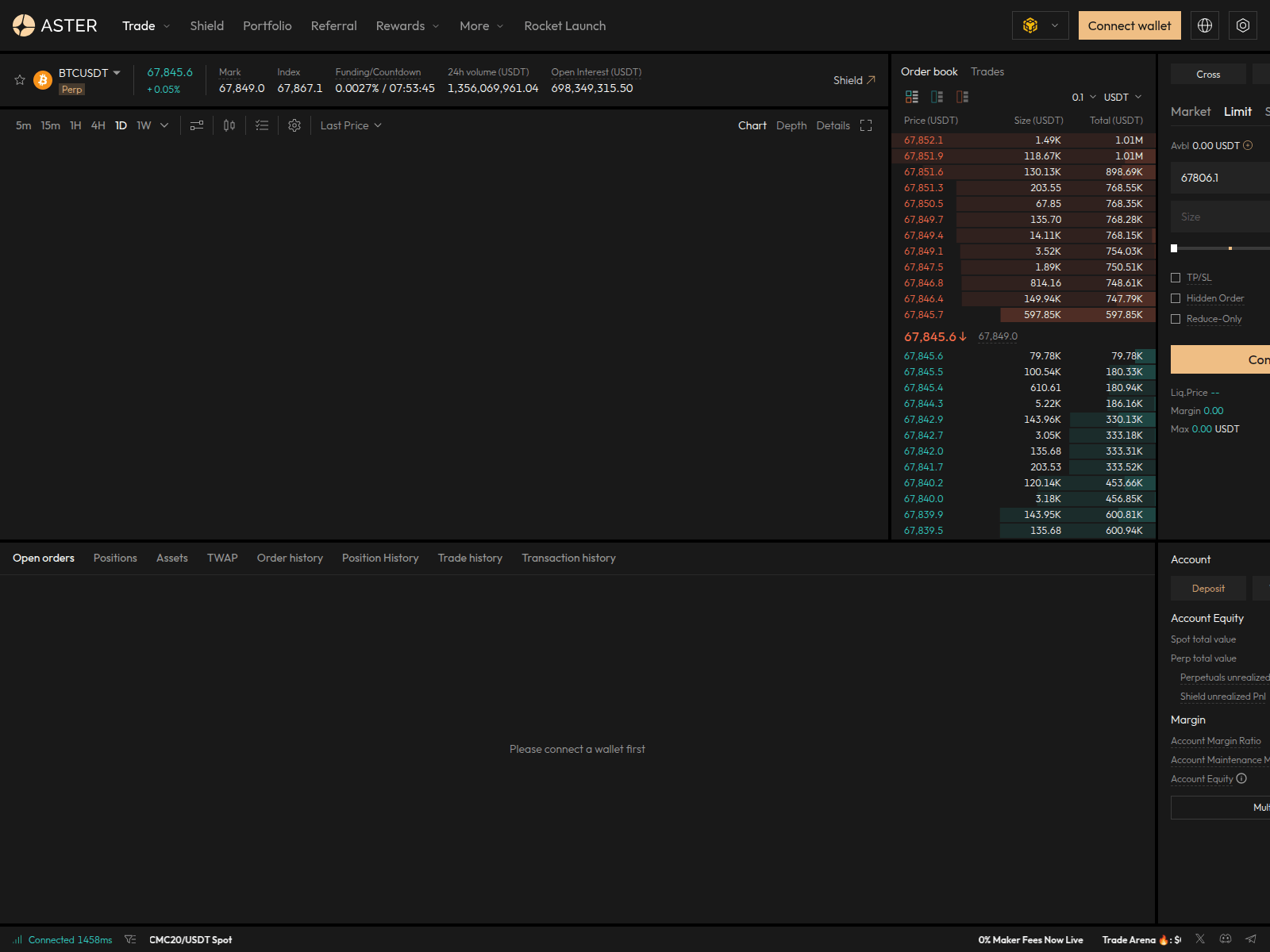 “67,849.0 | BTCUSDT | Trade | Aster”