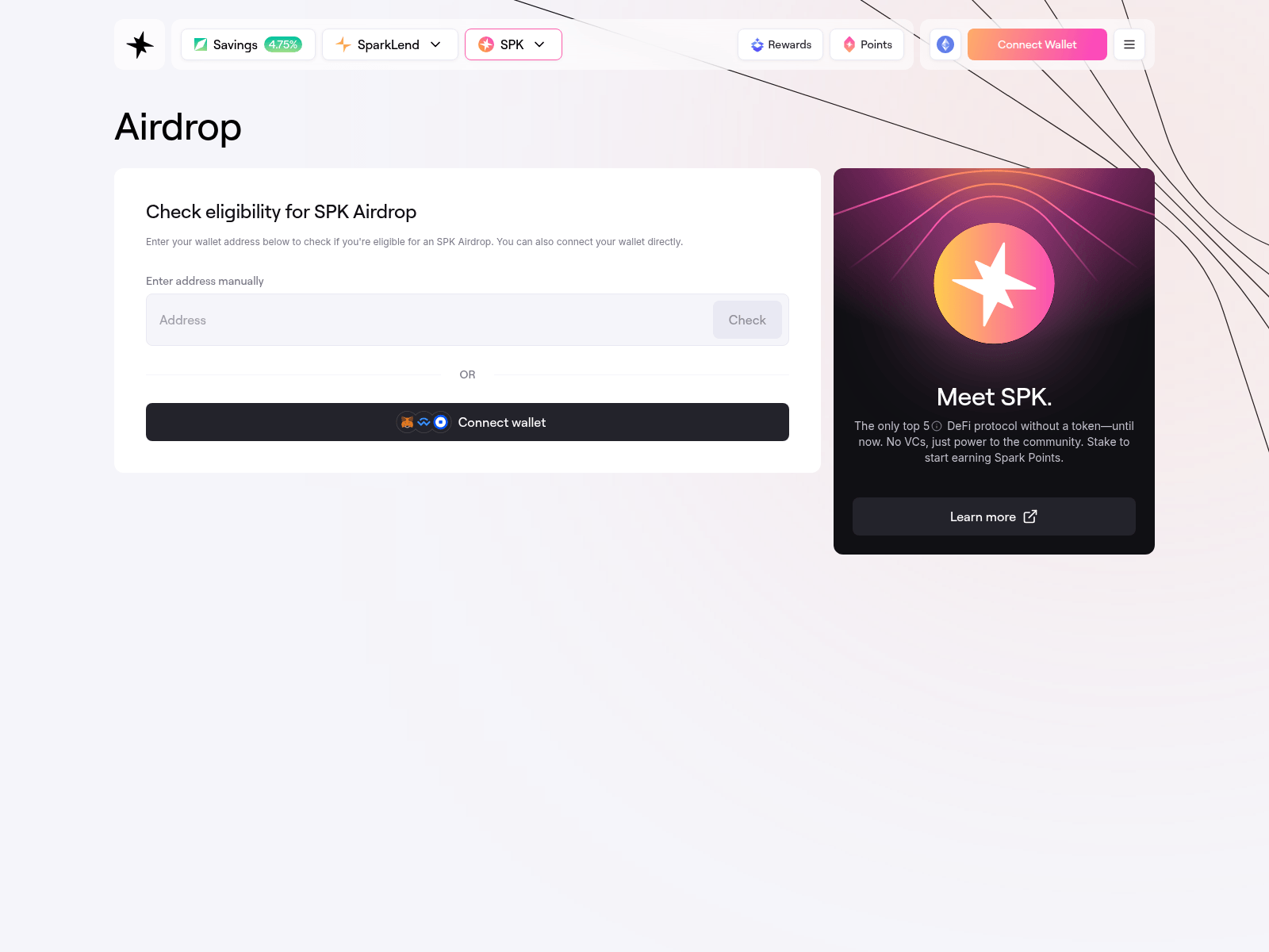 The site displays a page titled “Spark: Earn on your stablecoins”.