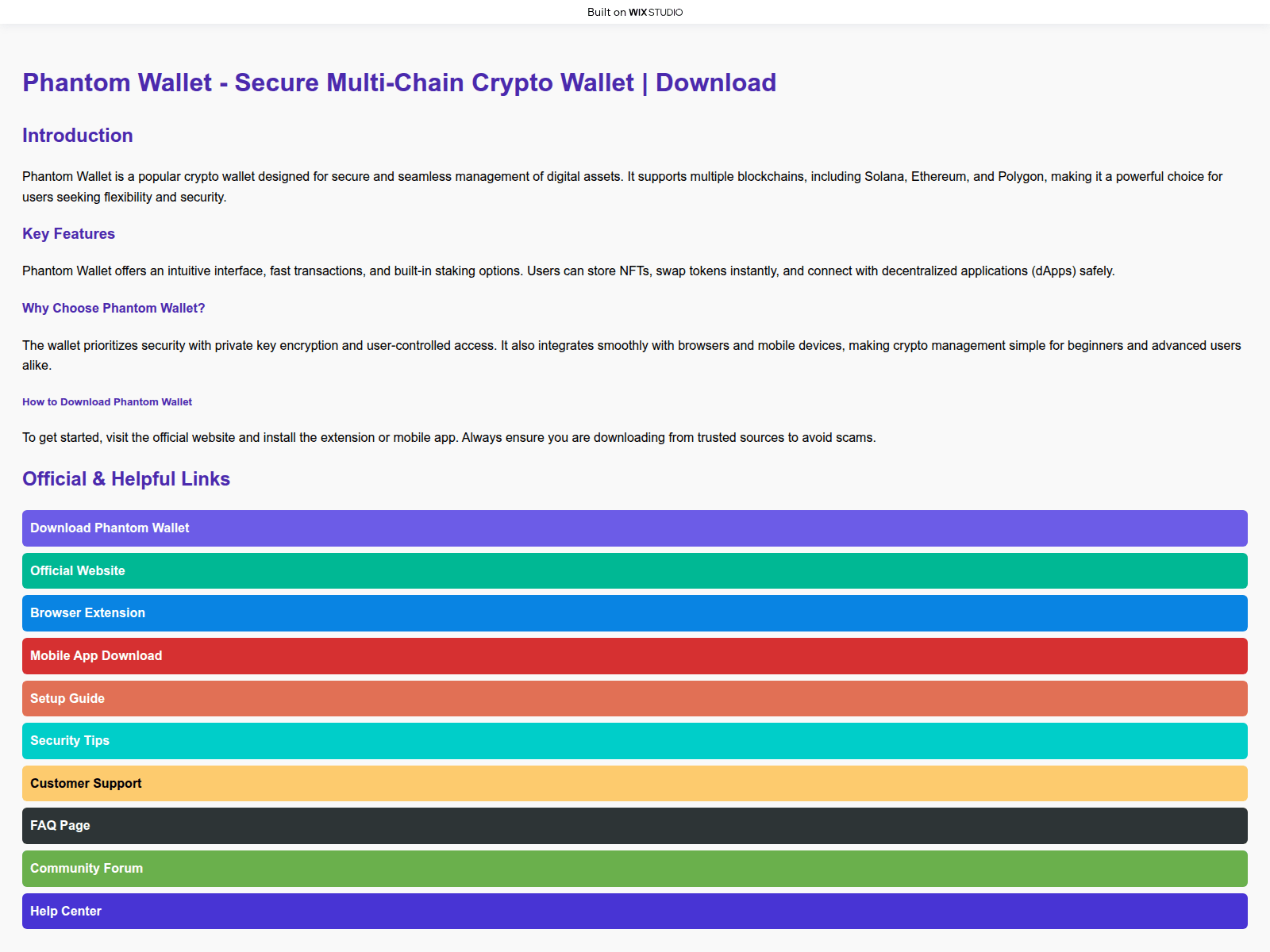 appsphantom.wixstudio.com has been flagged by 4 security vendors as of April 21, 2026. It appears to impersonate Phantom, a legitimate service. This site has been identified as a Solana Drainer.