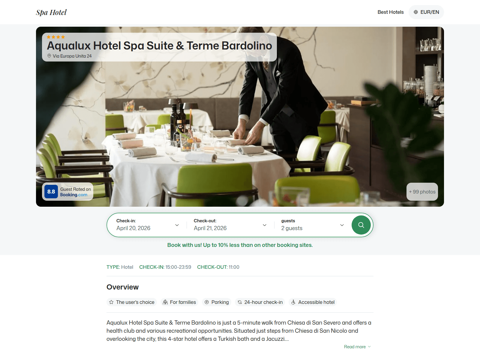 The site displays a page titled “Aqualux Hotel Spa Suite & Terme Bardolino - Bardolino, Italy”.
