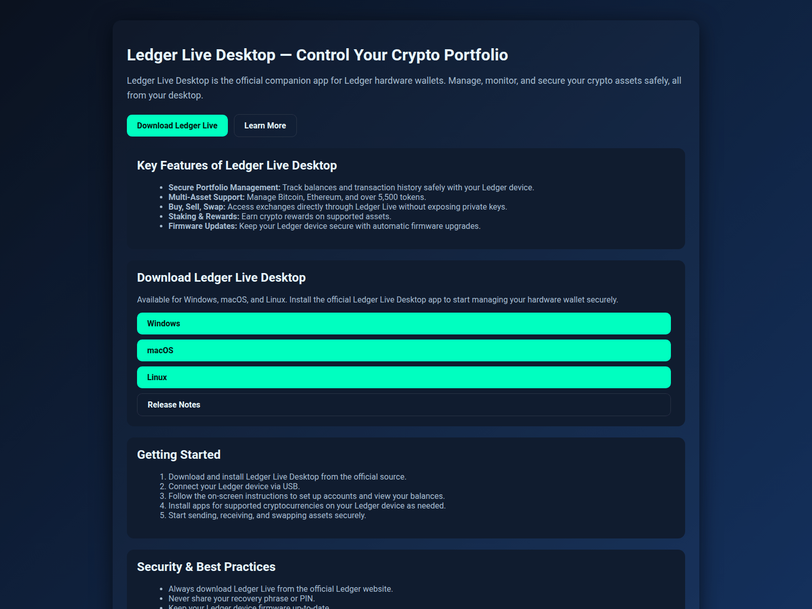 - Use a hardware wallet (Ledger, Trezor). Never store large amounts in browser wallets