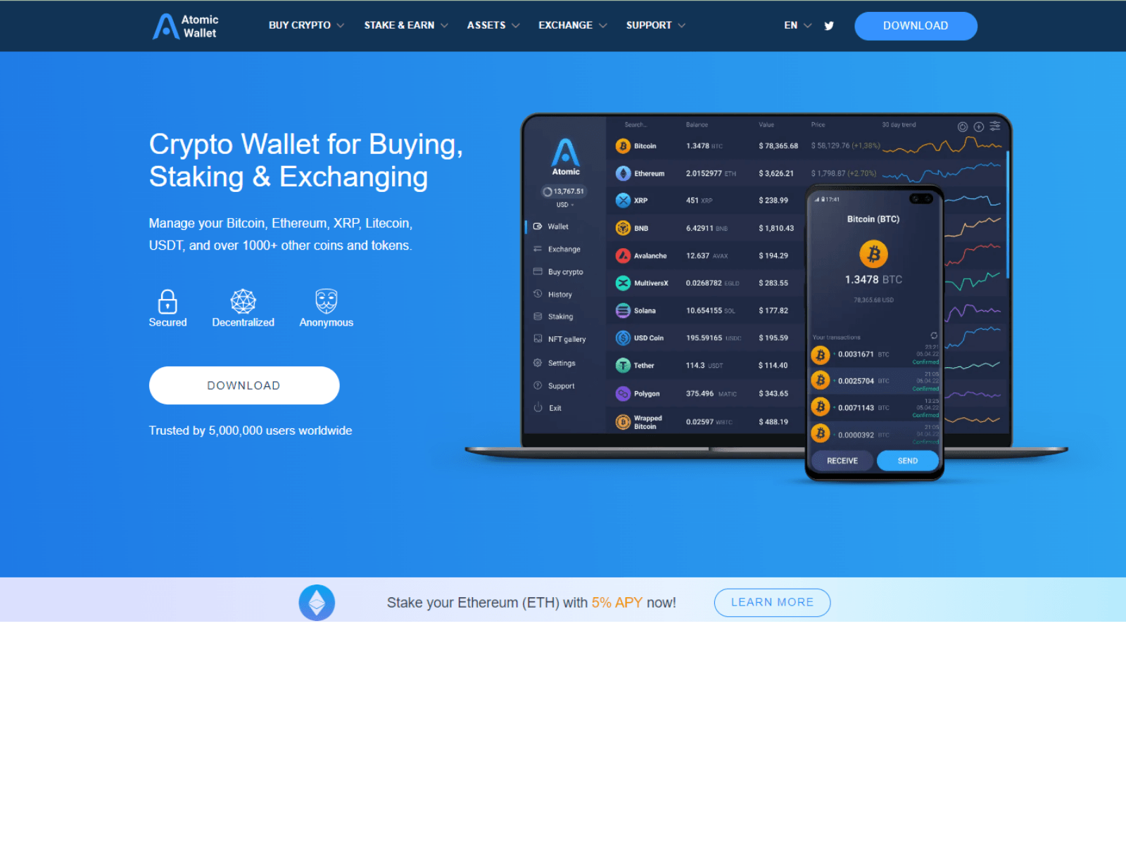 The site displays a page titled “Atomic Wallet Security | Protect Your Digital Investments”.
