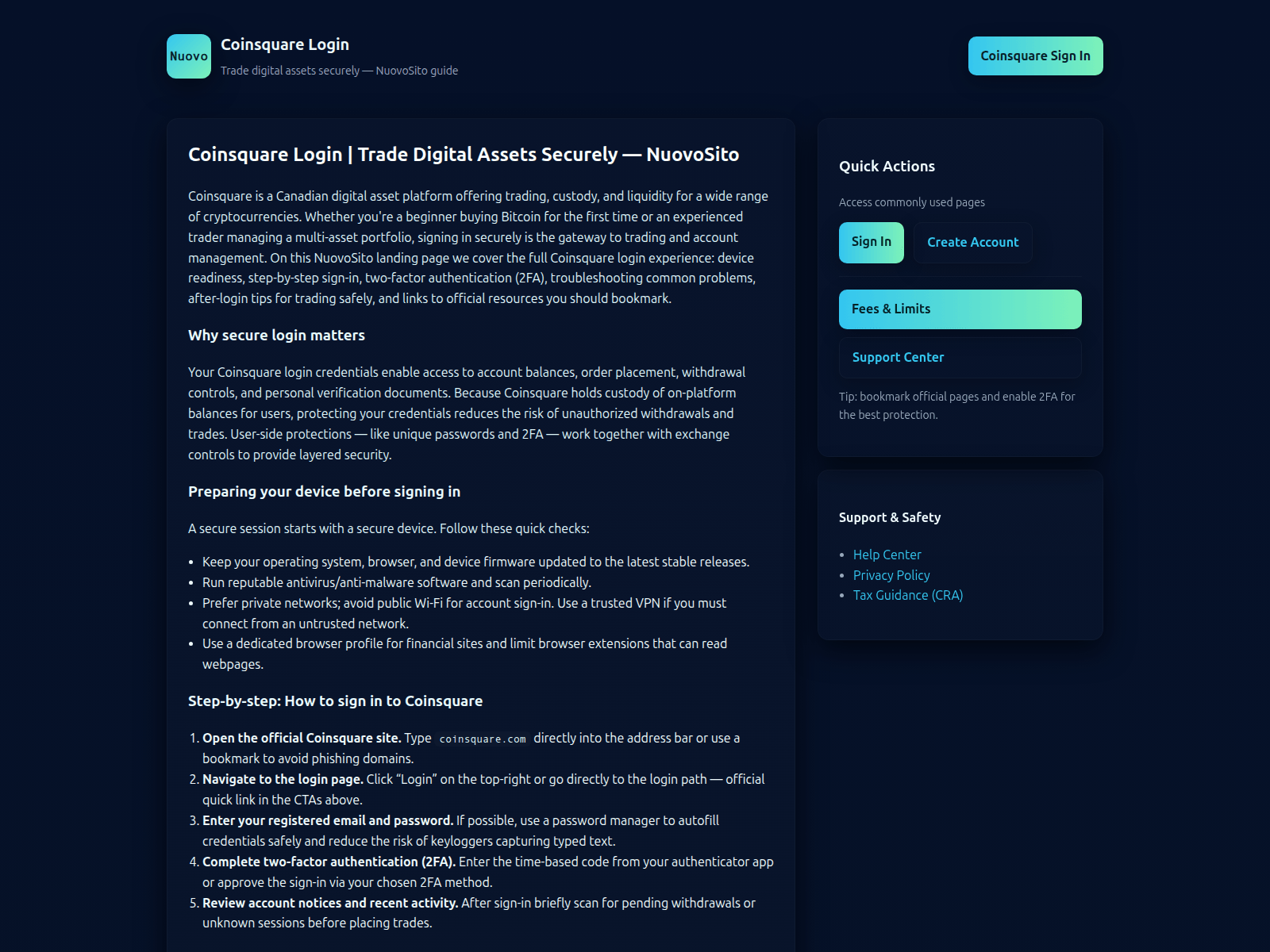 Domain Security & Threat Intelligence Report“Coinsquare Login | Trade Digital Assets Securely - NuovoSito”