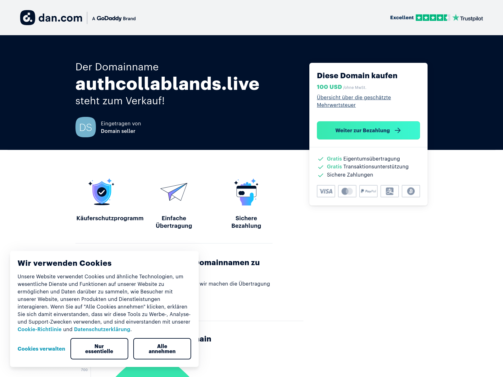 Domain Security & Threat Intelligence Report“Der Domainname authcollablands.live steht zum Verkauf.”