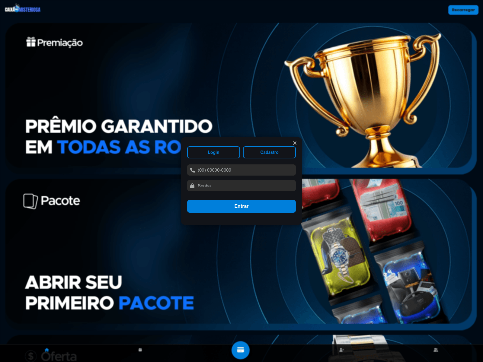 The site displays a page titled “Início - Caixas”, which may be designed to impersonate Avalanche.