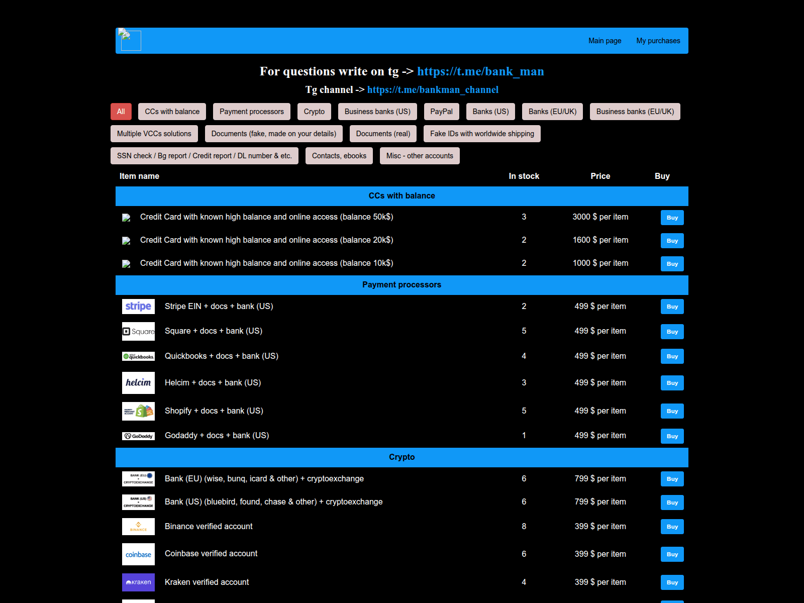 “Bankman - banks, merchants, crypto, paypal, docs”