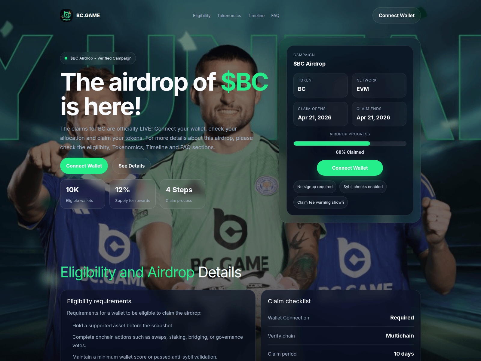 The site displays a page titled “$BC Airdrop”, which may be designed to impersonate Airdrop Scam.