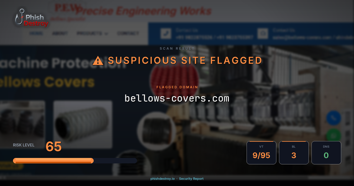 bellows-covers.com has been flagged by 9 security vendors as of March 16, 2026.