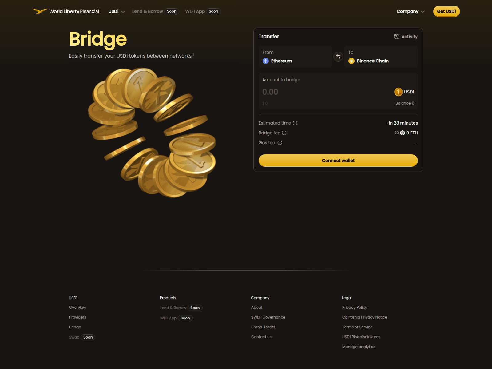 The site displays a page titled “World Libirty Financia - Bridge USD1 Across Chains”.