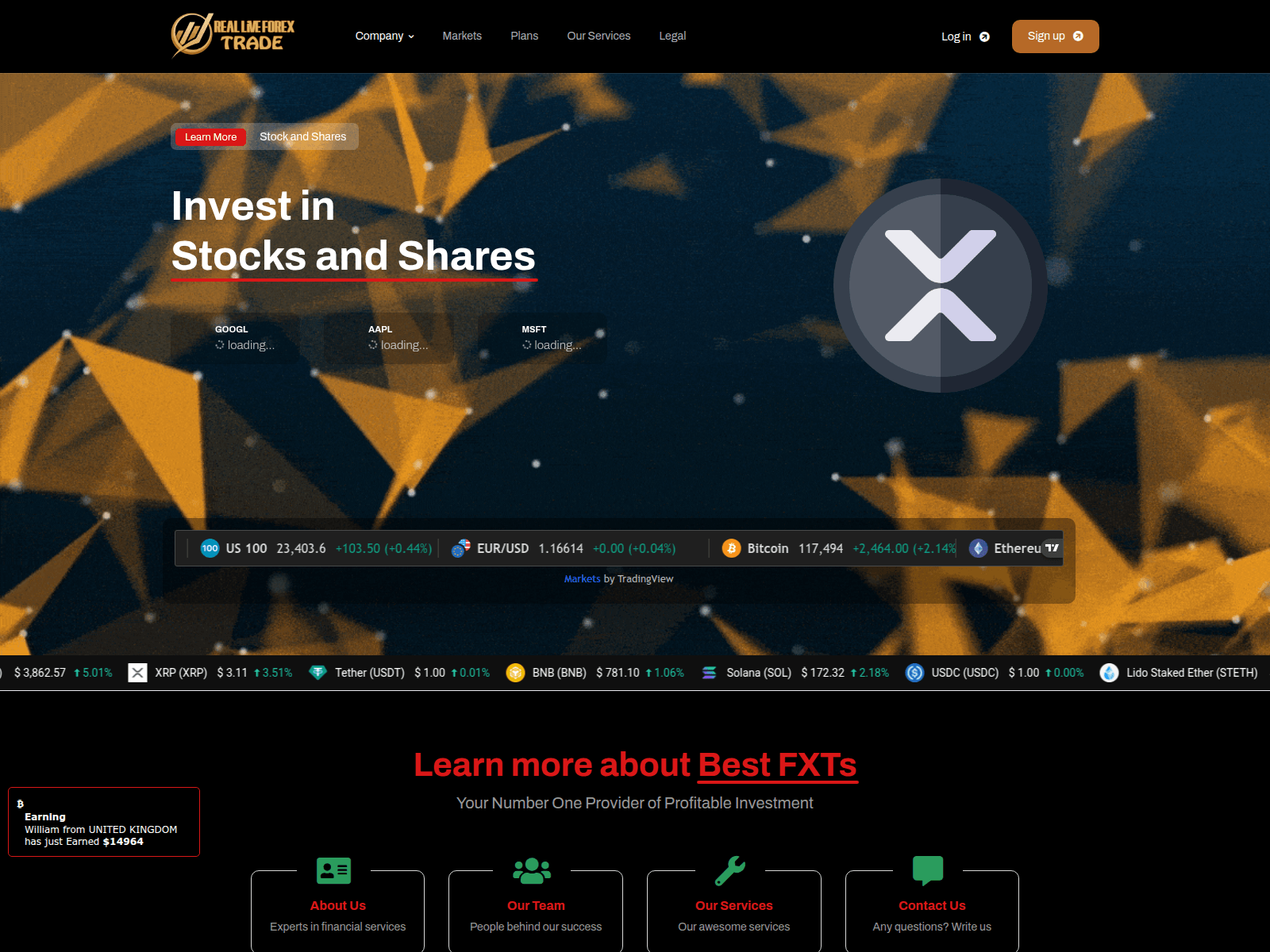 The site displays a page titled “Best FXTs | Reliable and Profitable Trading & Investment in Binary Options, Forex, Indices, CFD's”.