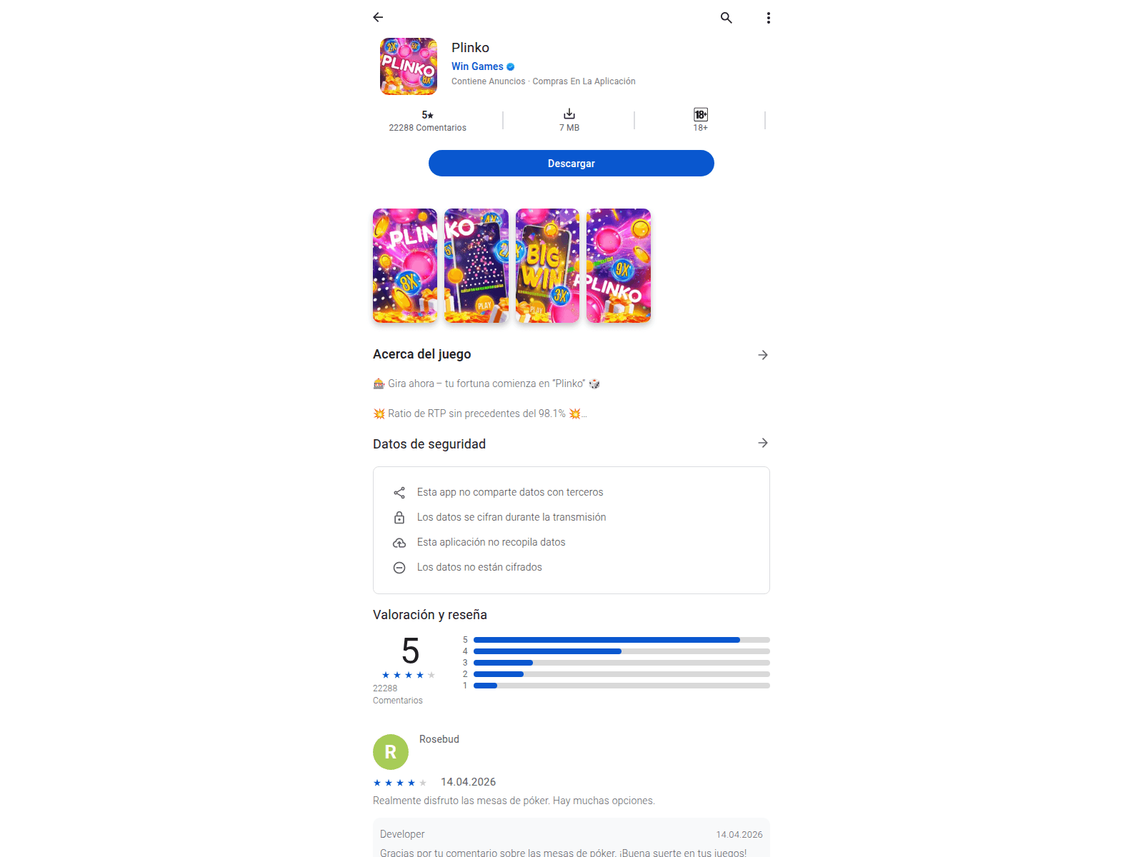 The site displays a page titled “Plinko”.