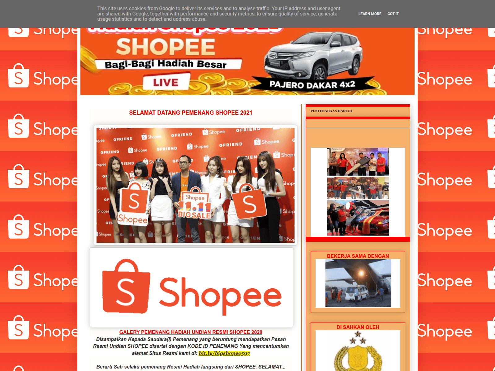 The site displays a page titled “HADIAH SHOPEE 2021”.