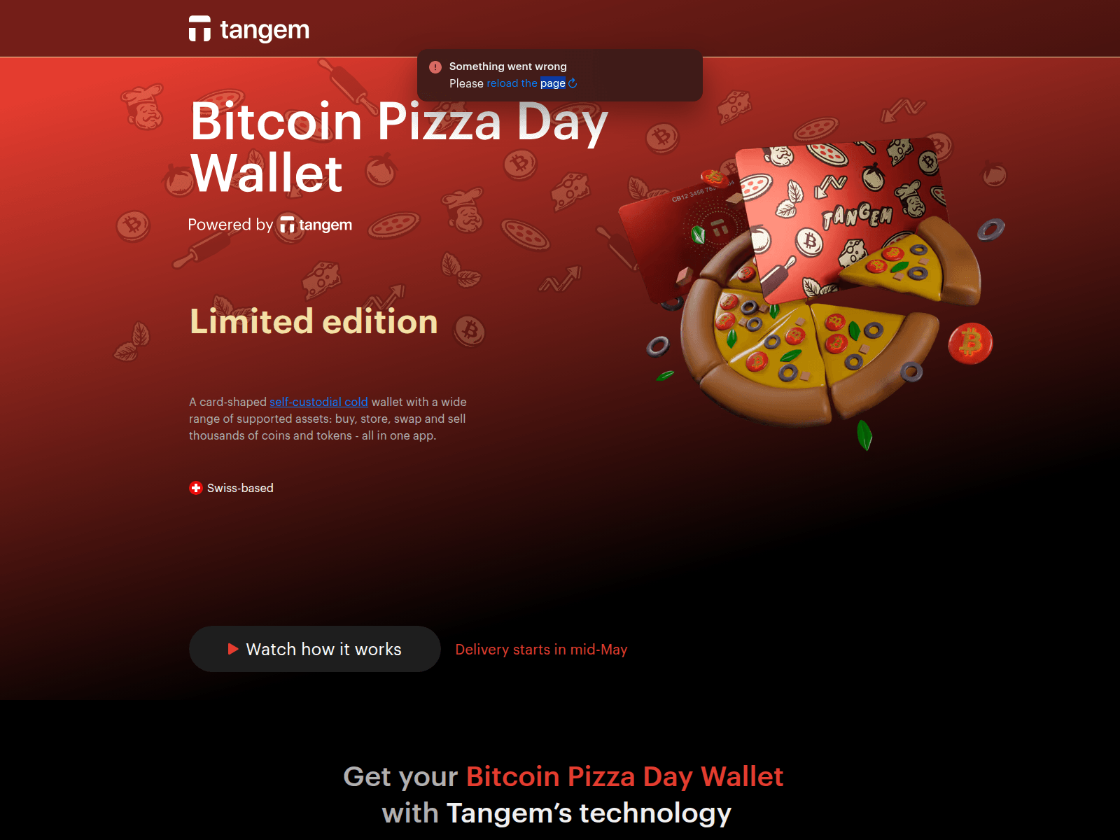The site displays a page titled “Bitcoin Pizza Day Preorder”, which may be designed to impersonate Bitcoin.