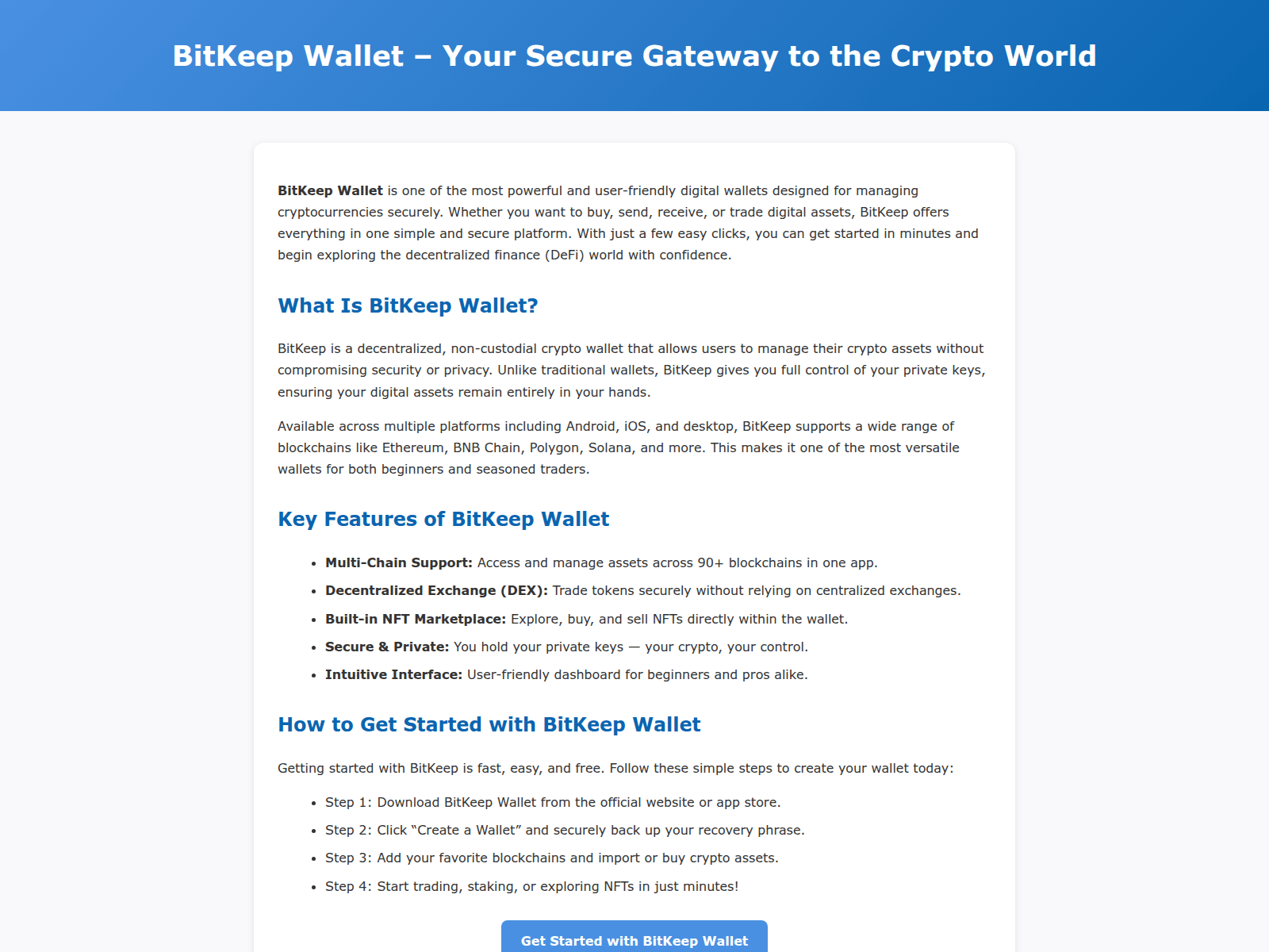 If you have visited bitkeep-wallet-eng[.]pages[.]dev and entered any personal information, such as your private keys or seed phrase, immediately move your cryptocurrency to a new, secure wallet. Change your passwords on any related accounts. Be extremely wary of any communications claiming to be from BitKeep or other cryptocurrency services. Report the site to Google Safe Browsing and your cryptocurrency exchange to help protect other users.
