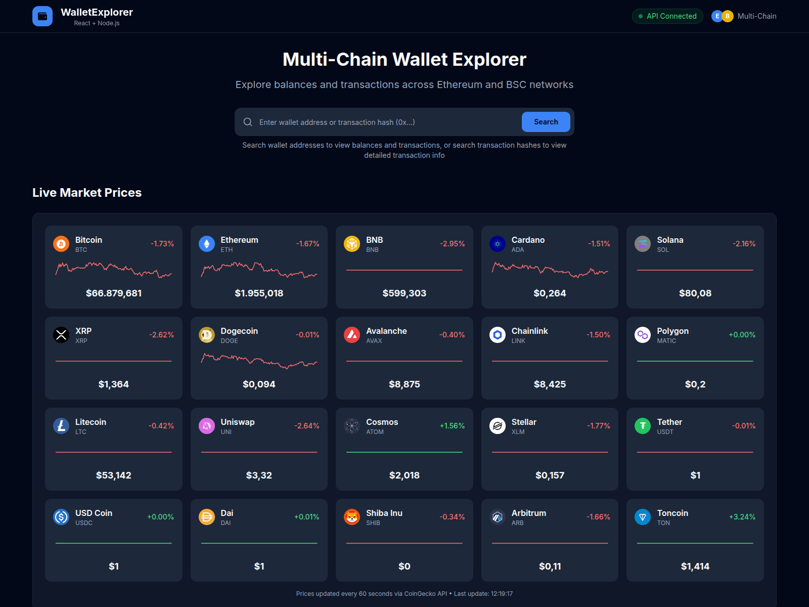“Multi-Chain Wallet Explorer - React + Node.js”