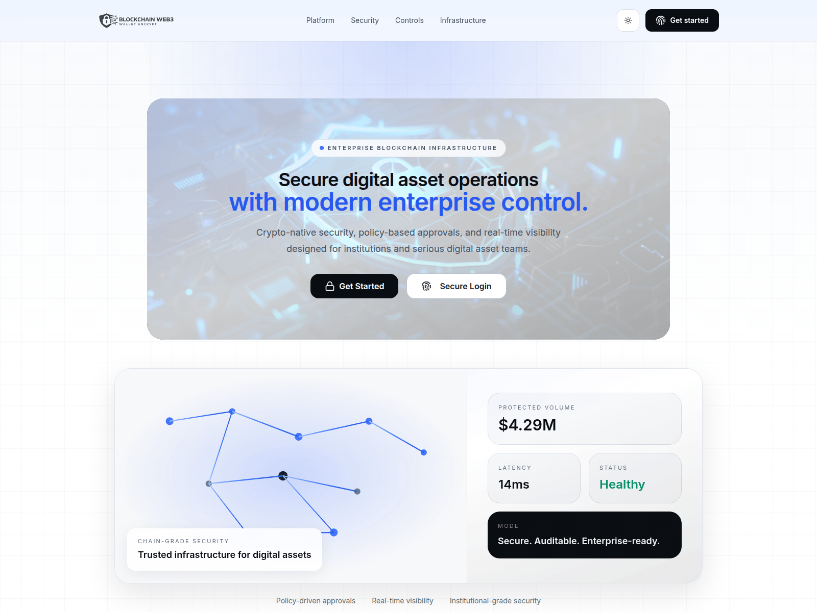 The site displays a page titled “Blockchain Web3 Wallet Encrypt — Digital Asset Security Infrastructure”.