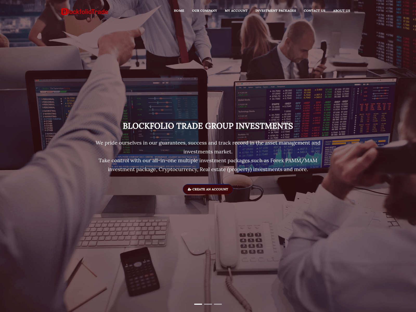 The site displays a page titled “BlockFolio Trade | BEST TRADING PLATFORM”, which may be designed to impersonate Investment Scam.