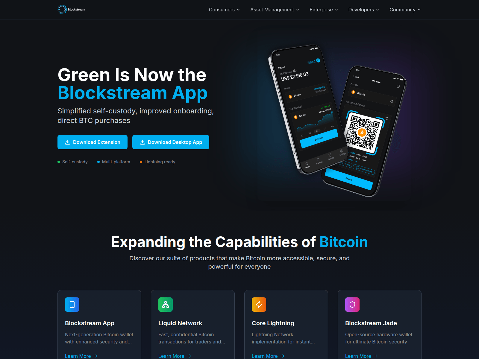 Forensic screenshot of blockstreamdesktopapp.com showing the phishing page layout