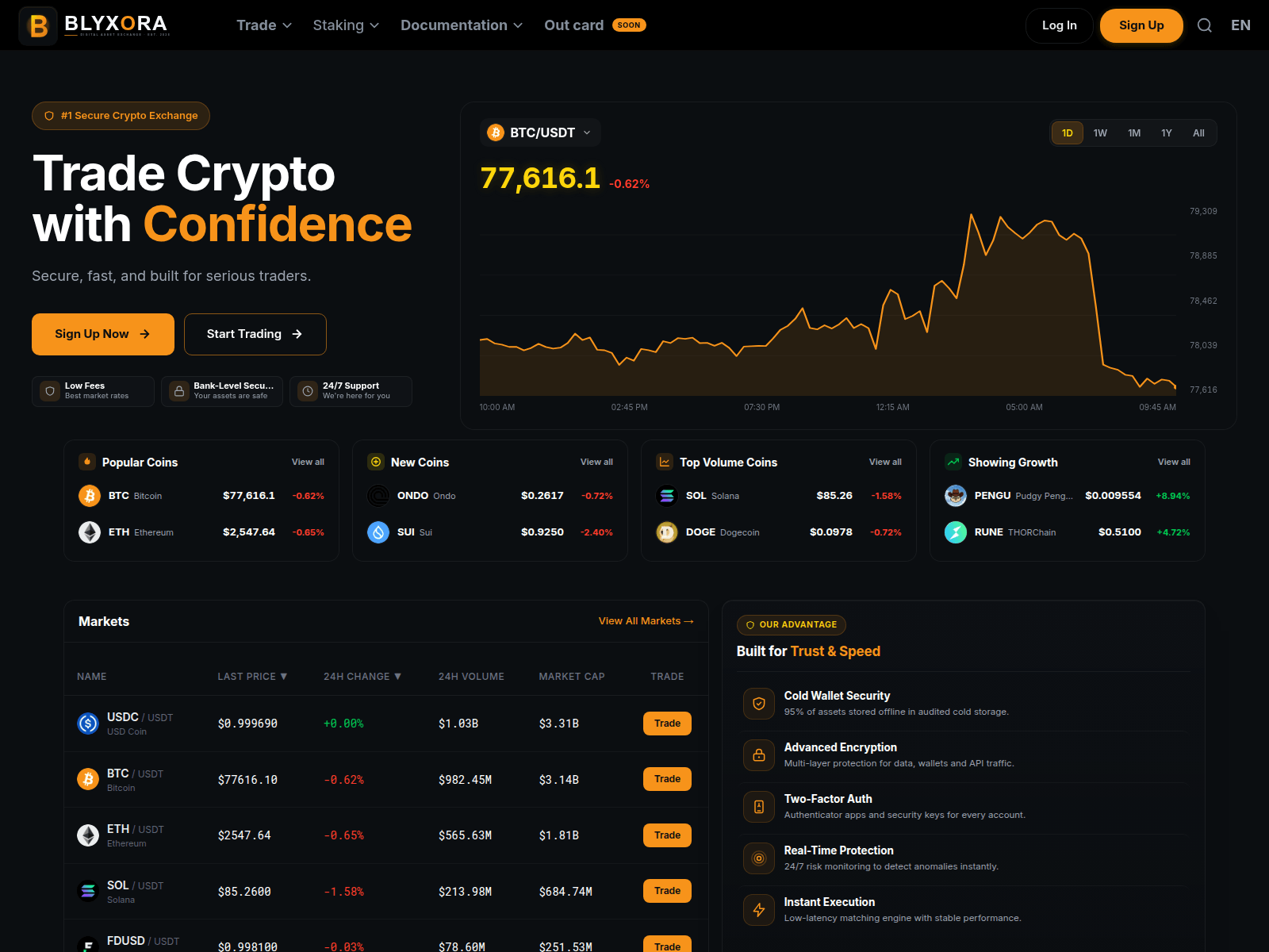 The site displays a page titled “Blyxora | Buy & Trade Crypto”.