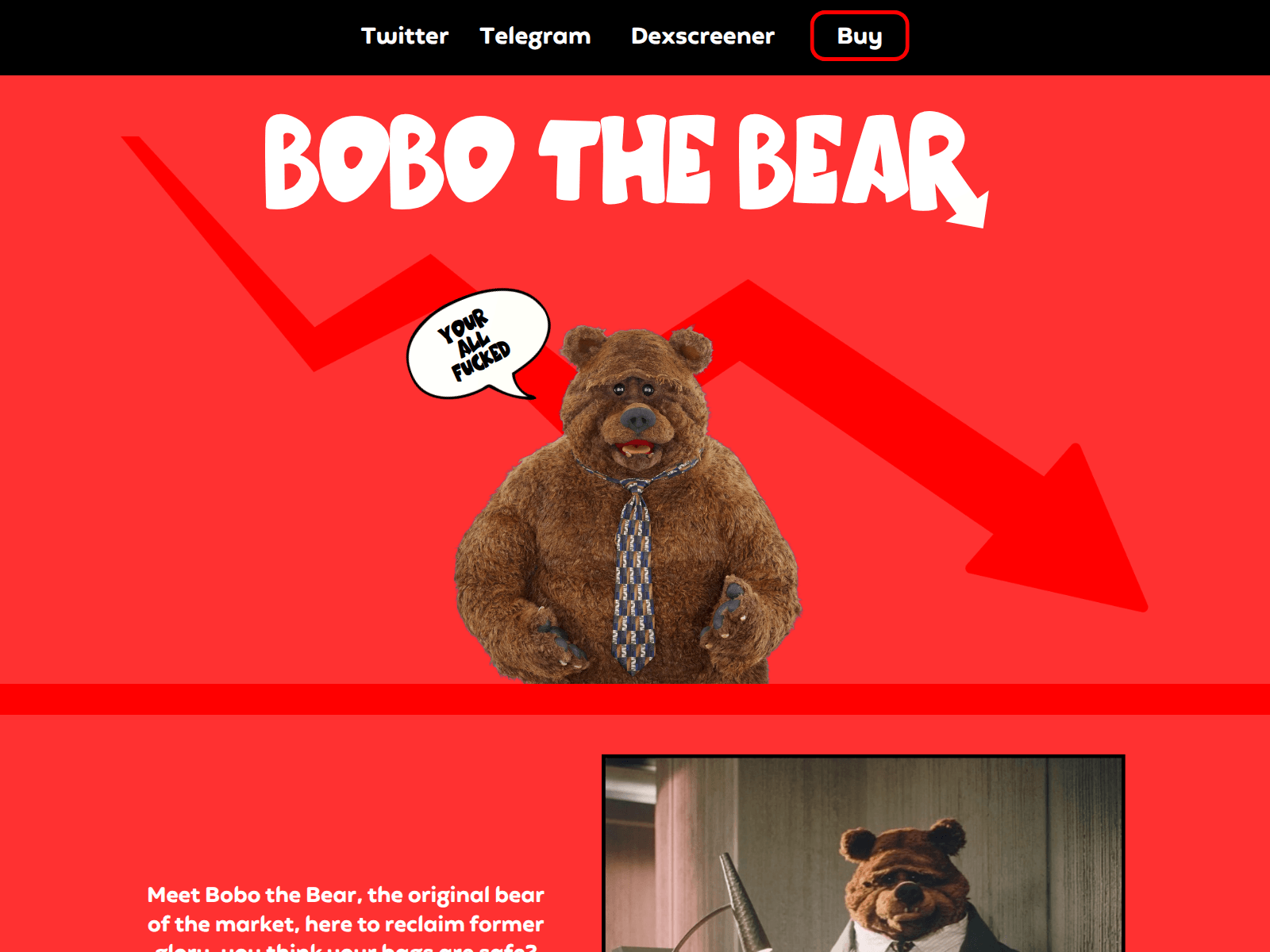 The site displays a page titled “Bobo The Bear”, which may be designed to impersonate dexscreener.
