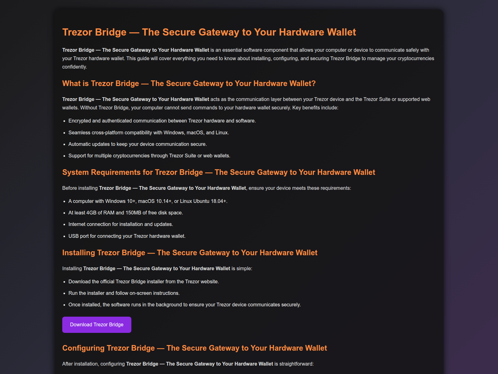 Domain Security & Threat Intelligence Report“Trezor Bridge — The Secure Gateway to Your Hardware Wallet”