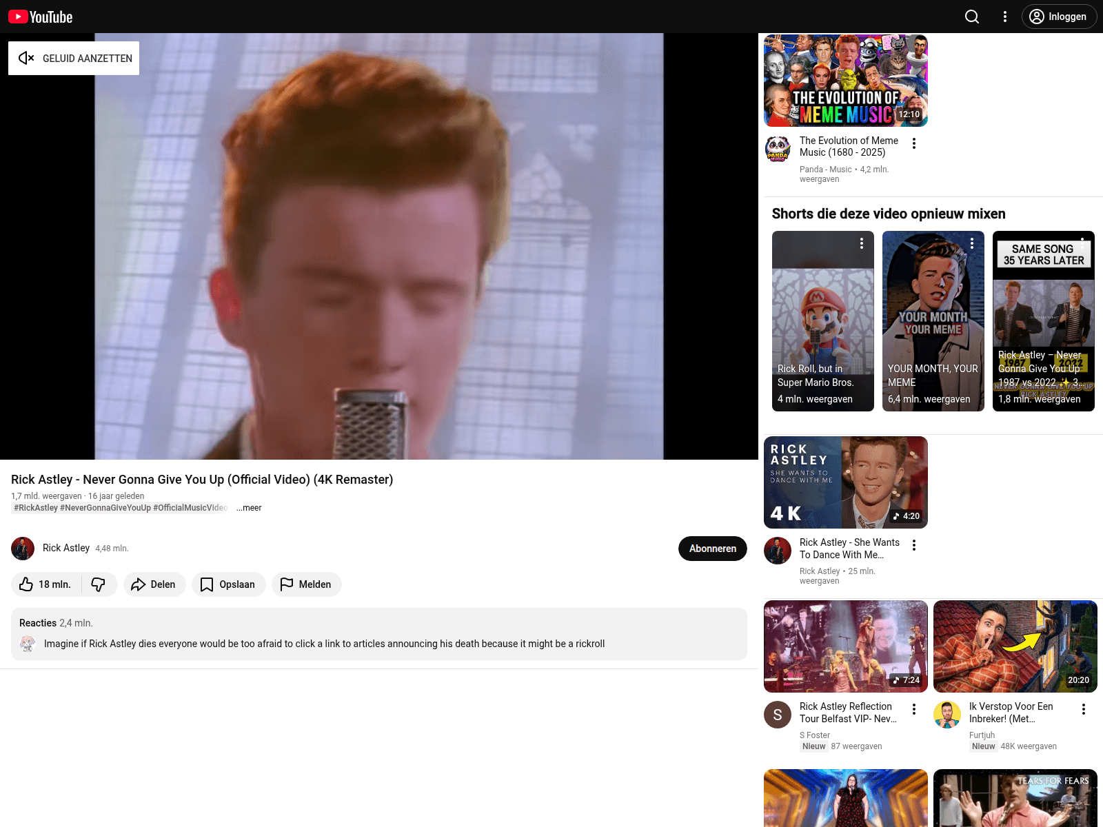 “Rick Astley - Never Gonna Give You Up (Official Video) (4K Remaster) - YouTube”