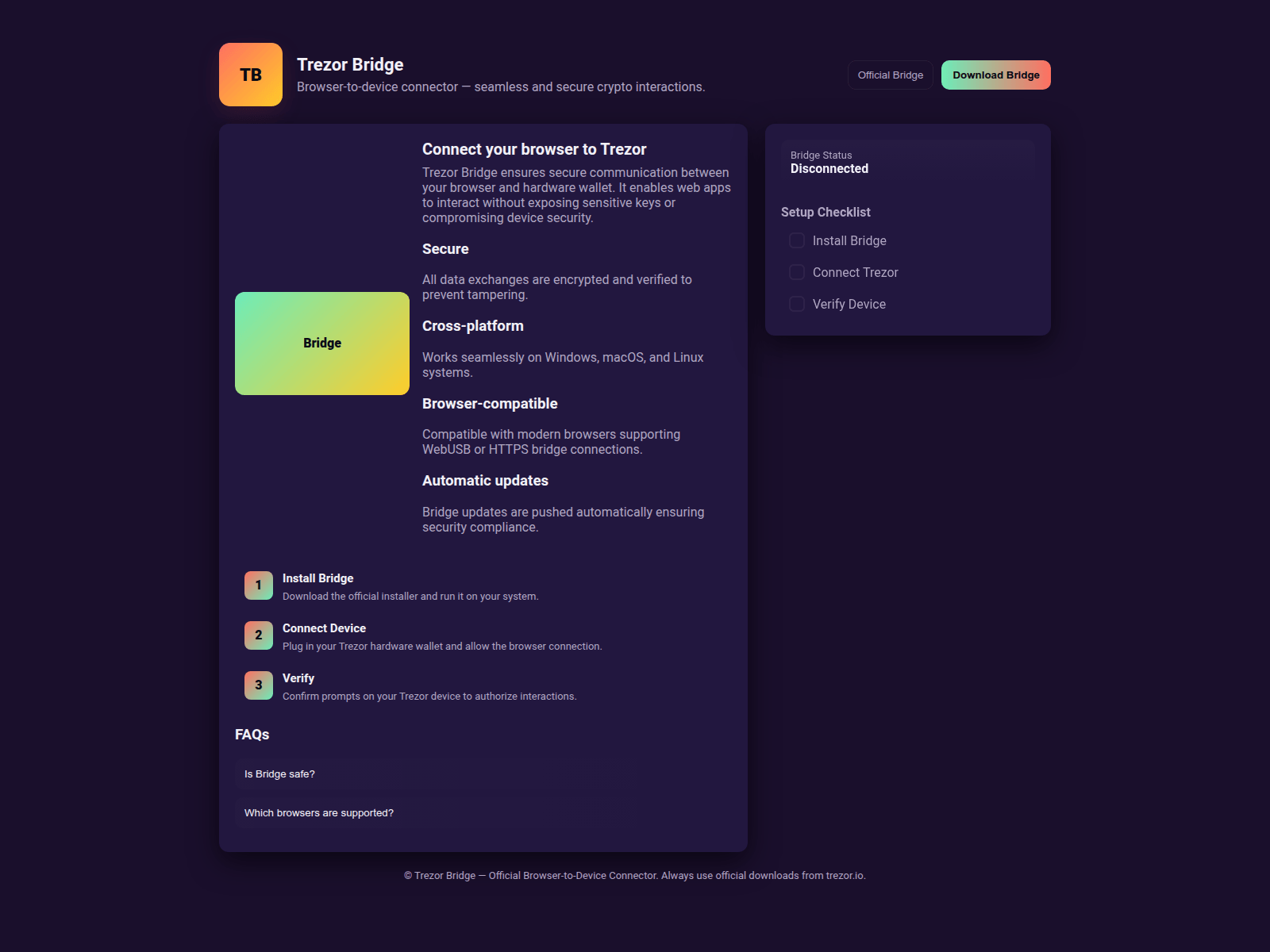 Domain Security & Threat Intelligence Report“Trezor Bridge — Browser to Device Connector”