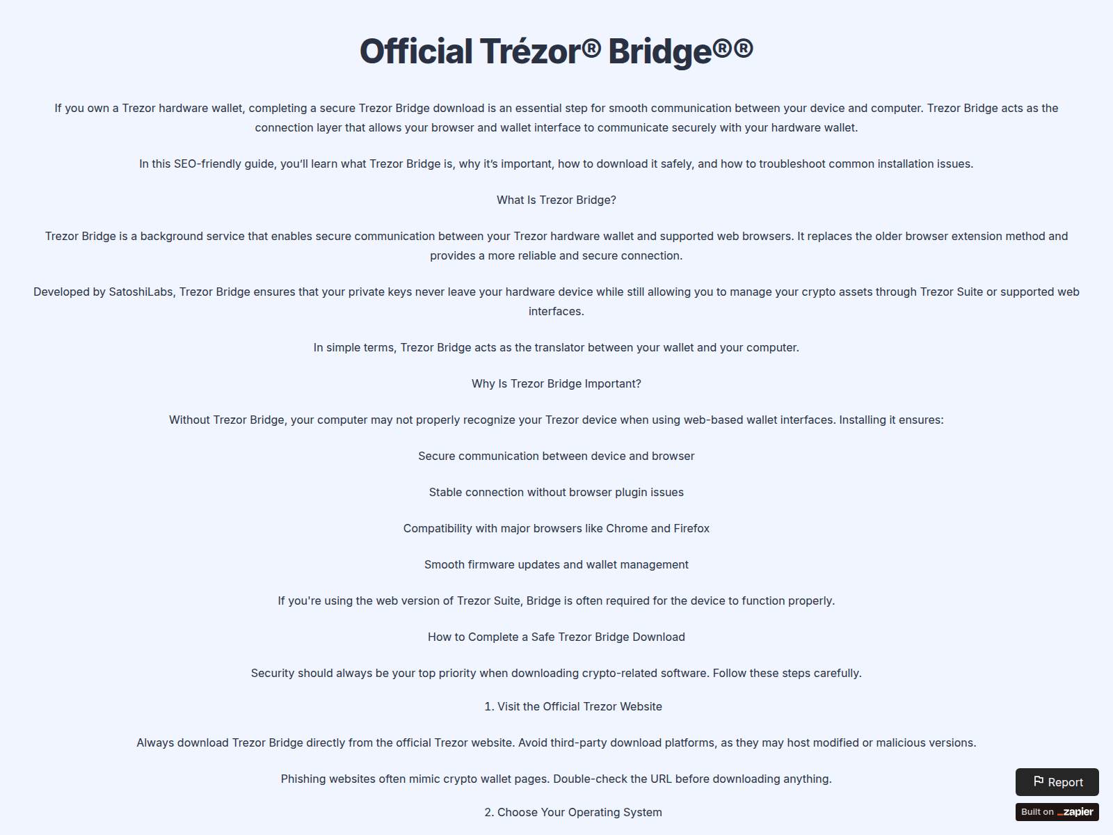The site displays a page titled “Official Trézor® Bridge®®”.