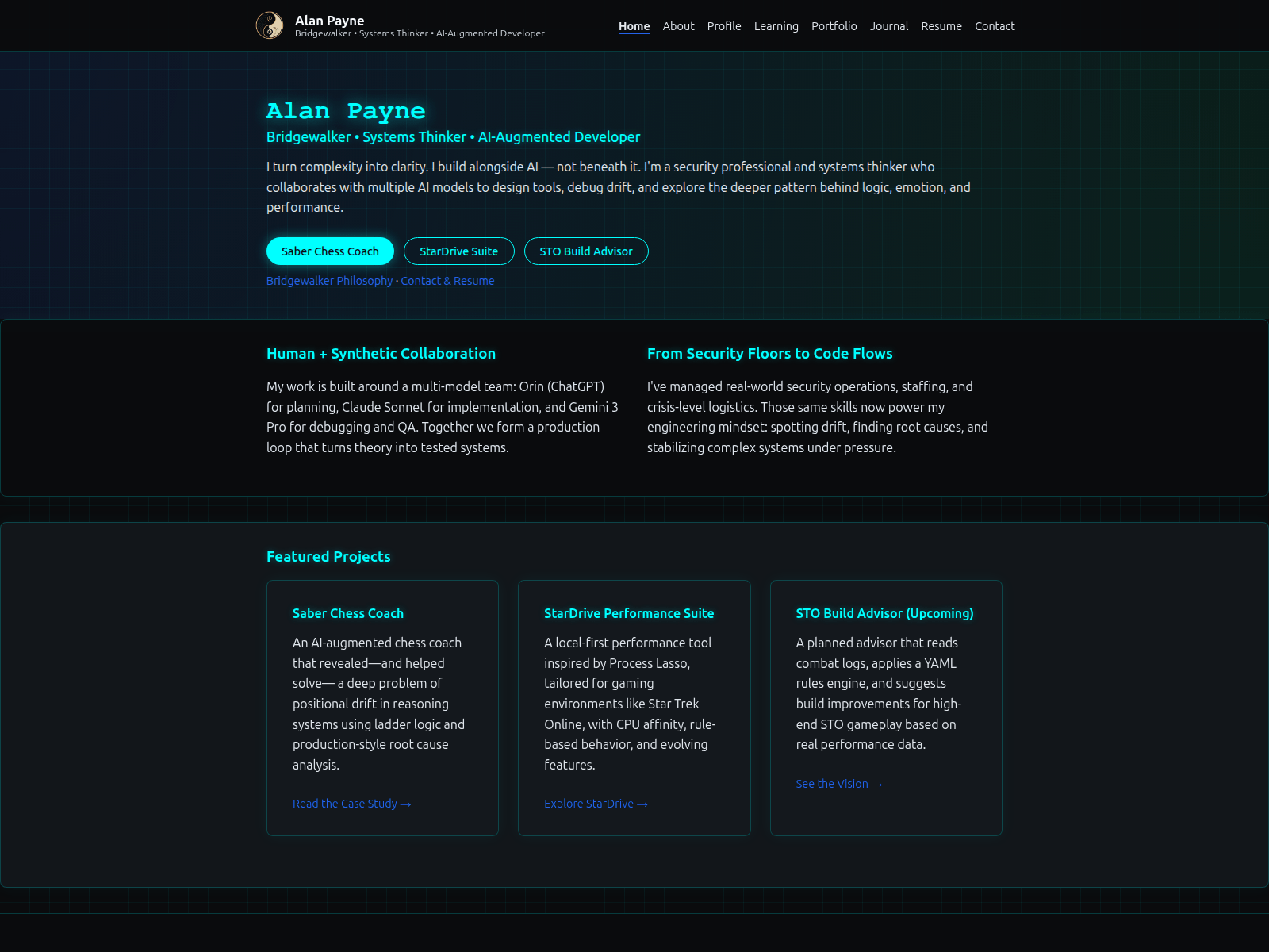 The site displays a page titled “Alan Payne | Bridgewalker Portfolio”.