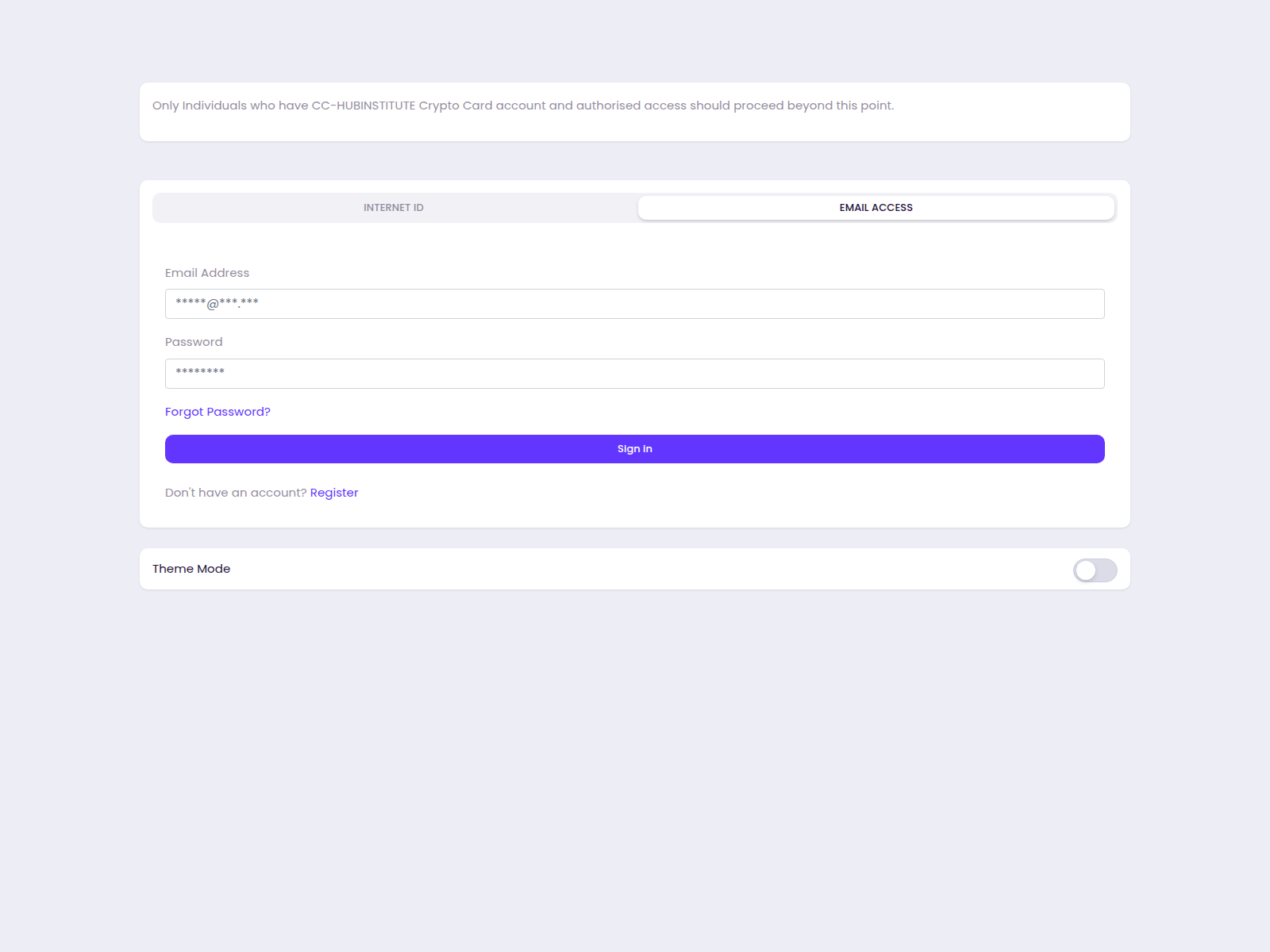 The site displays a page titled “Login - CC-HUBINSTITUTE”.