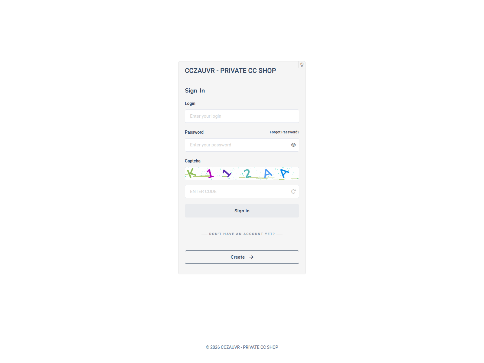 The site displays a page titled “CCZAUVR - PRIVATE CC SHOP | Sign In”.