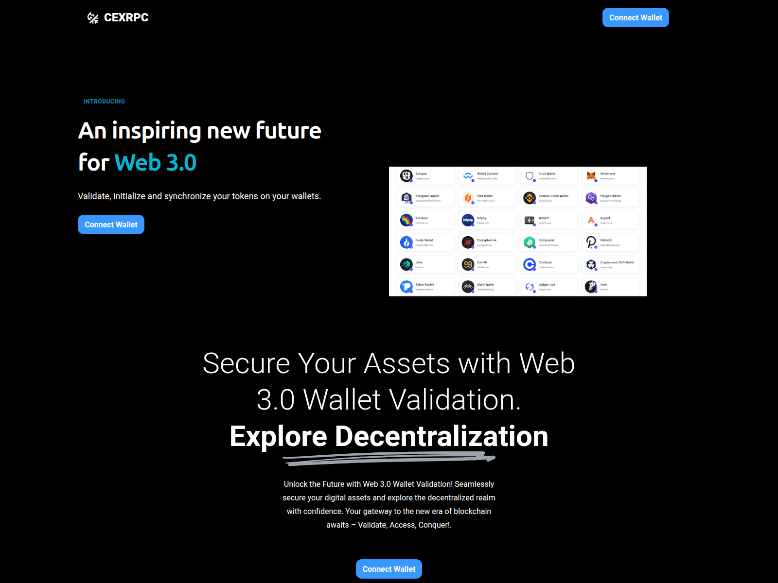 The site displays a page titled “CexRpc Decentralized DApp”.