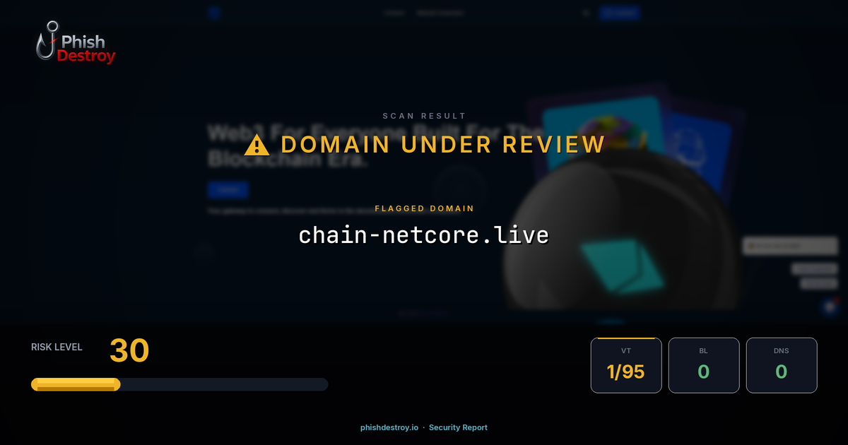 The domain chain-netcore[.]live has been identified as a cryptocurrency phishing website. This malicious site targets Web3 users by mimicking legitimate crypto platforms to steal wallet credentials and digital assets.