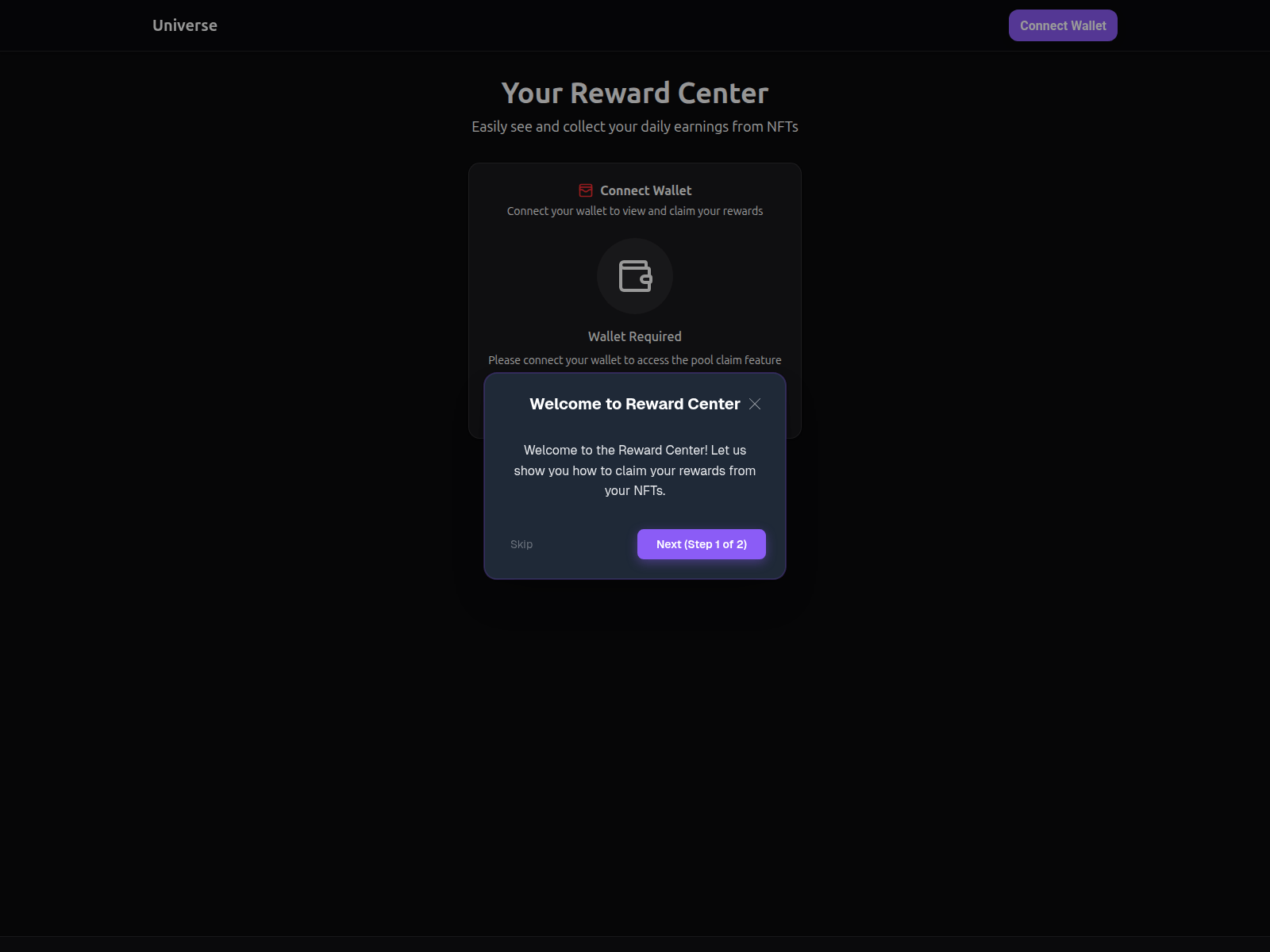 The site displays a page titled “Universe Claim”.