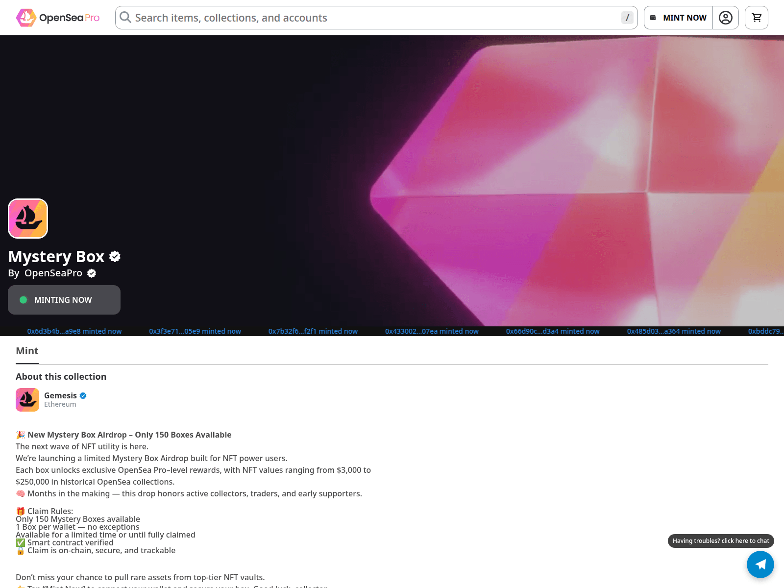 The site displays a page titled “OpenSea.io”.